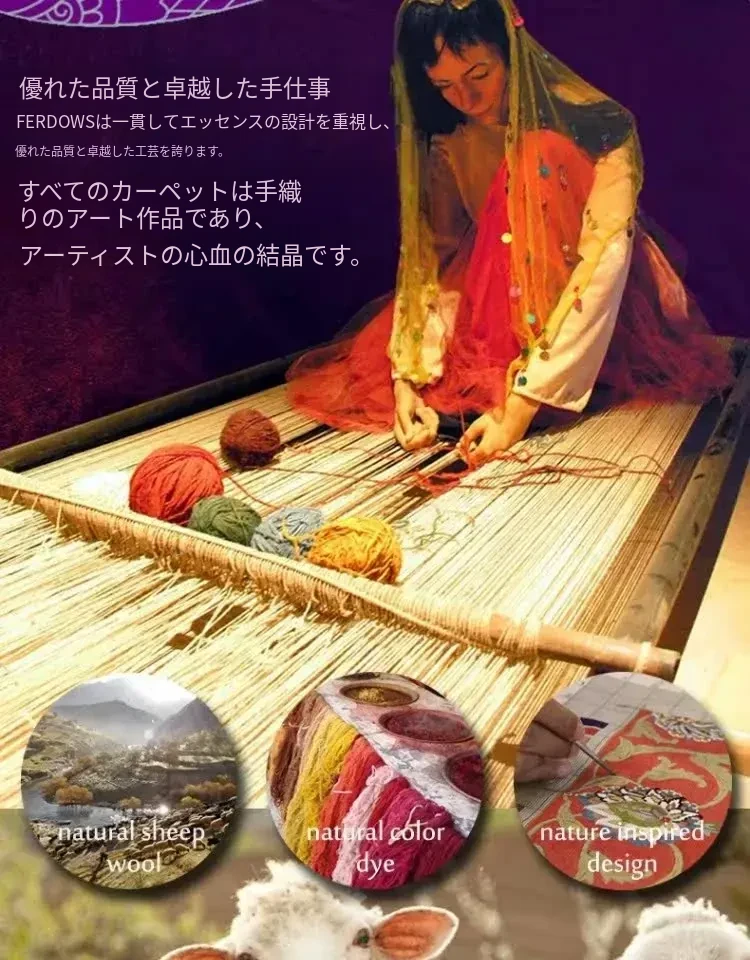 FERDOWSラグ 輸入純手編みのウール製 欧風・米風・フランス風のクラシック&レトロデザイン リビングや寝室にぴったりの高級感溢れるアイテム!