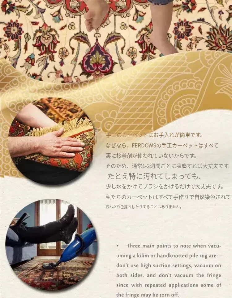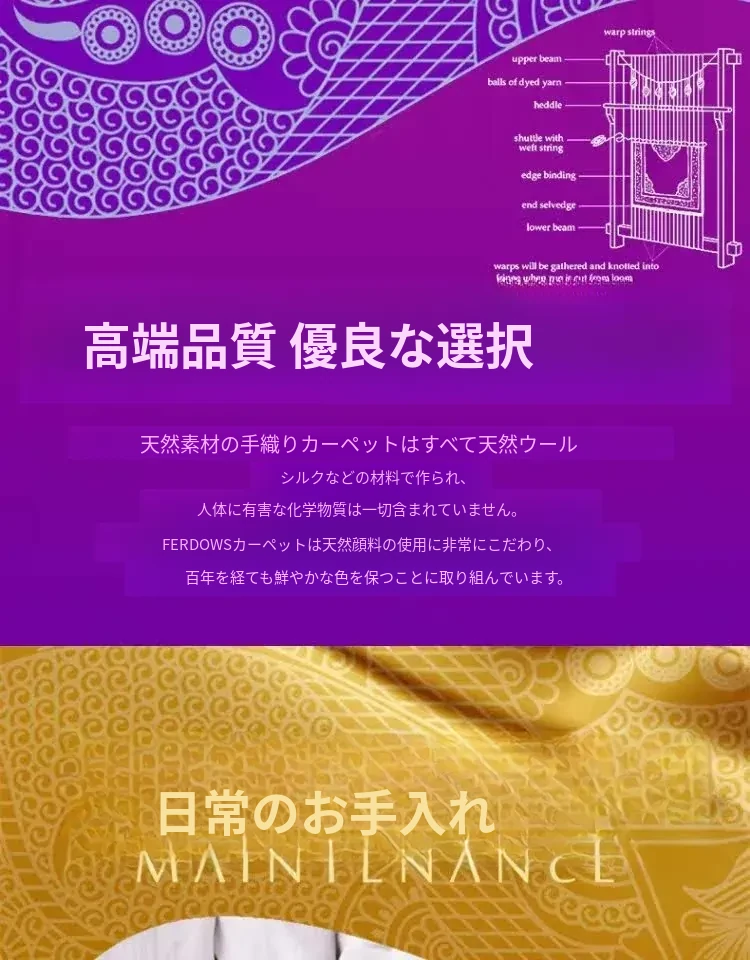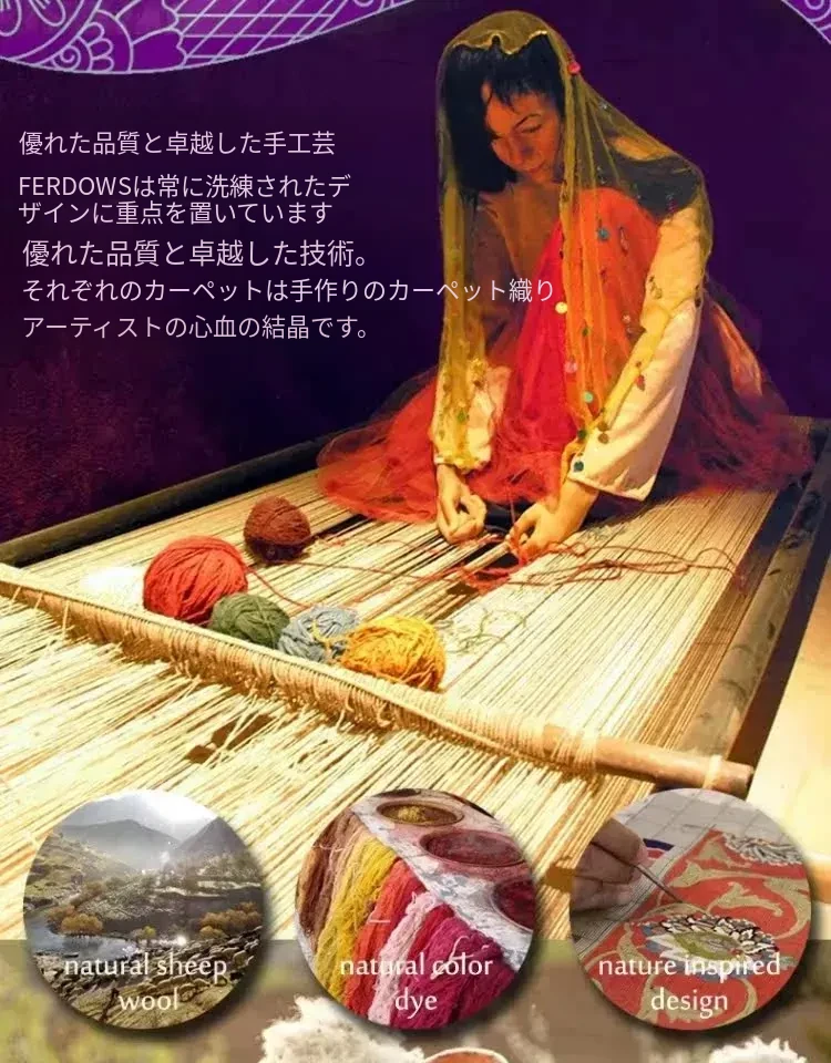 FERDOWSカーペット 輸入純手工編み純ウール 欧風アメリカンフレンチクラシックレトロトライバルデザイン 寝室にぴったりの高級感溢れるアイテム!