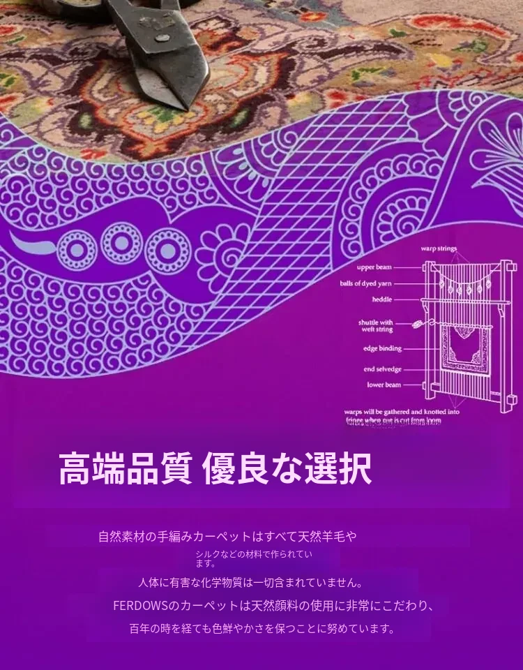FERDOWSラグ 輸入純手工結び 編み込み純ウール シンプルで新しい中式デザイン リビングルーム・寝室・書斎にぴったり!高品質な素材で心地よい空間を演出します。