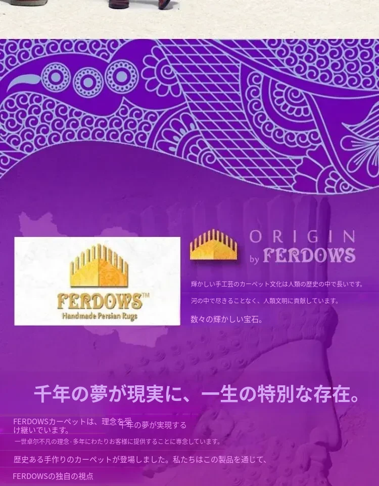 FERDOWSカーペット 輸入純手工結び ウール100% ヨーロピアン・アメリカン・フレンチ クラシックデザイン リビング・ベッドルームに最適な高級感溢れるラグ