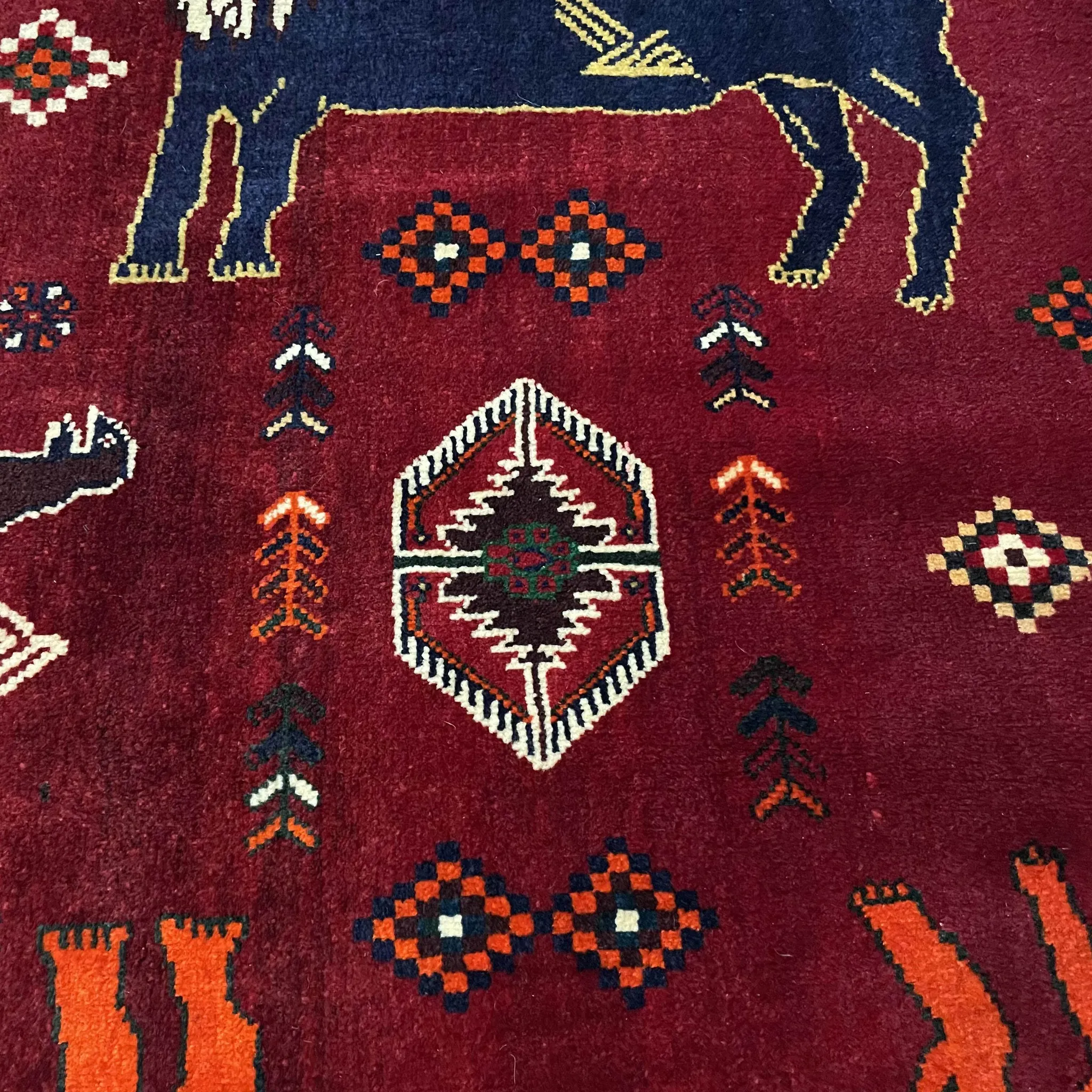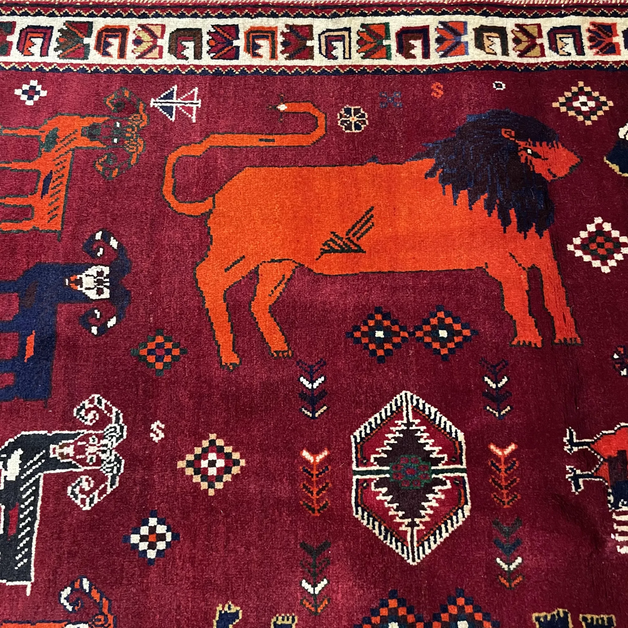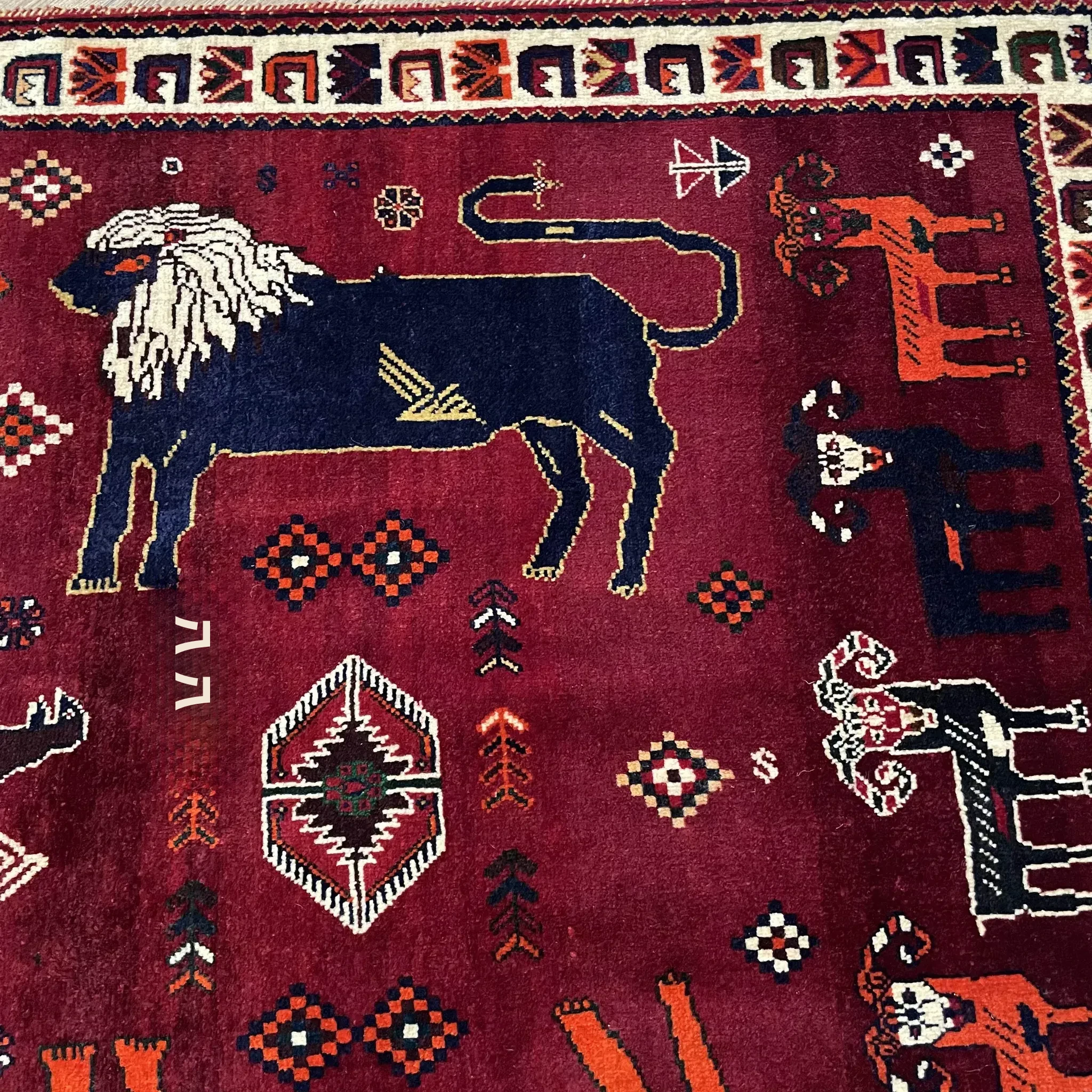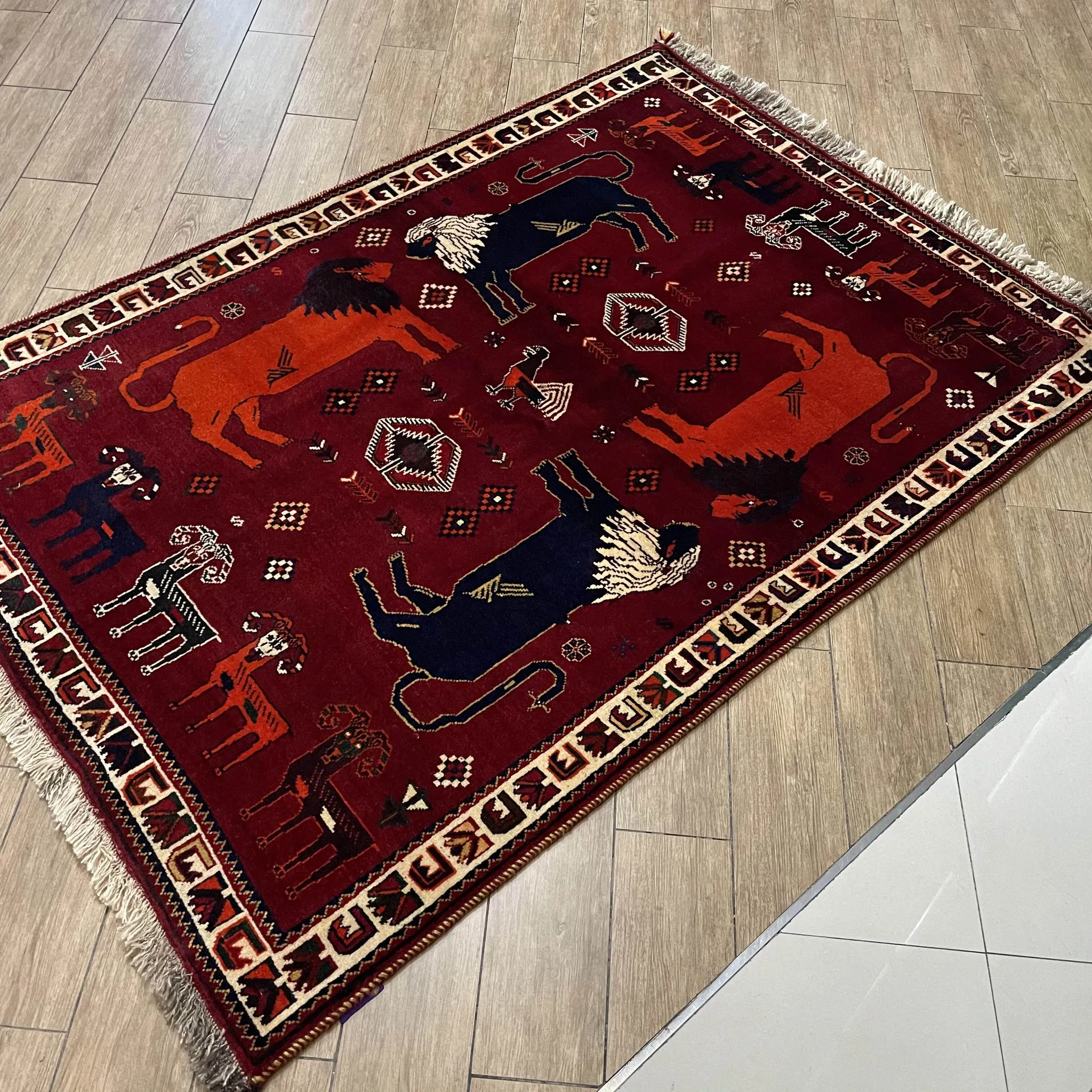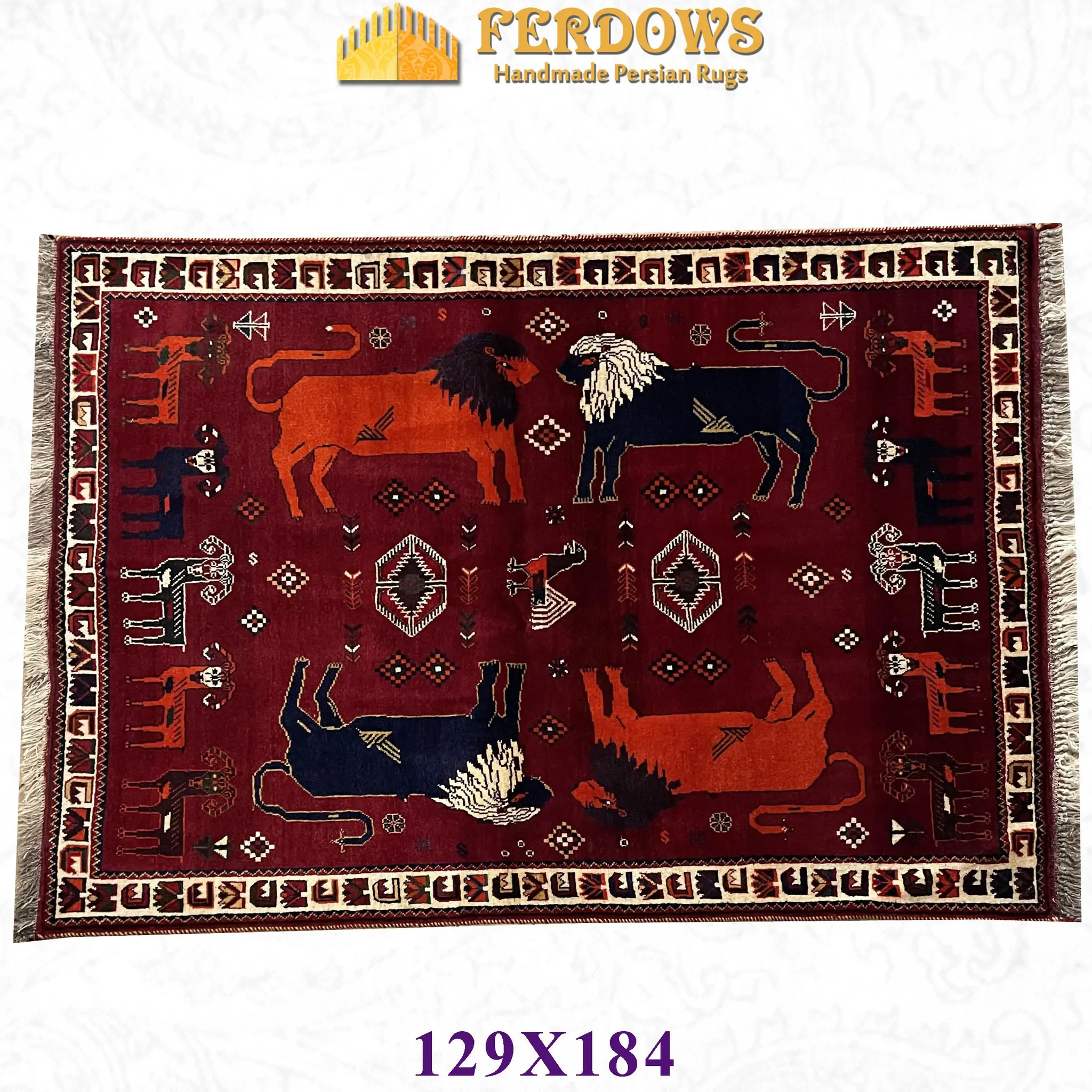FERDOWSペルシャカーペット/タペストリー/ウォールハンギング 手作りの結び目で織られた高品質100%ウールのライオンと山羊の遊牧風デザイン