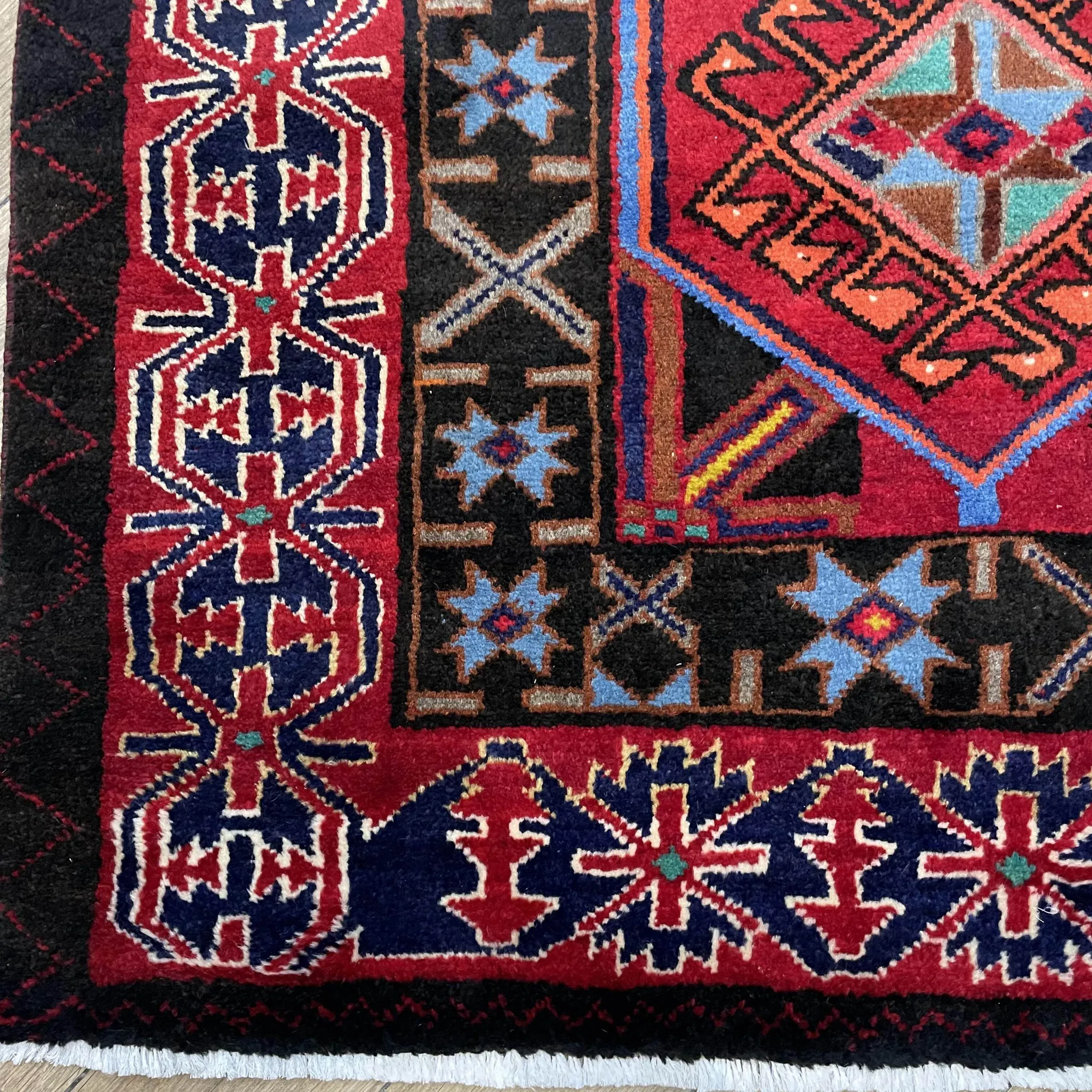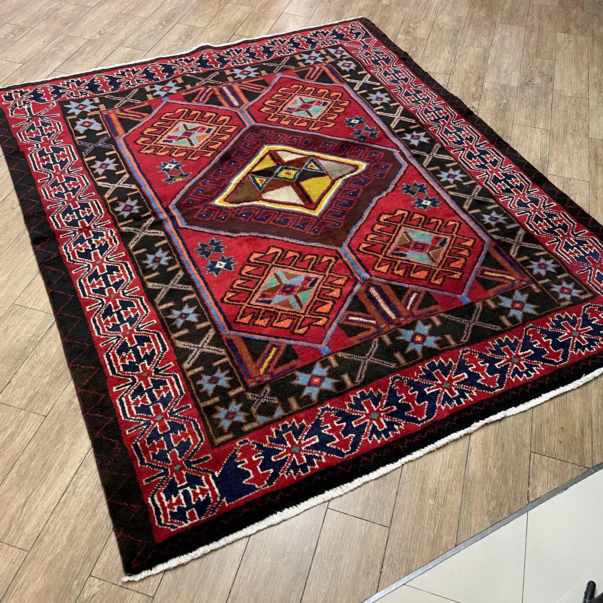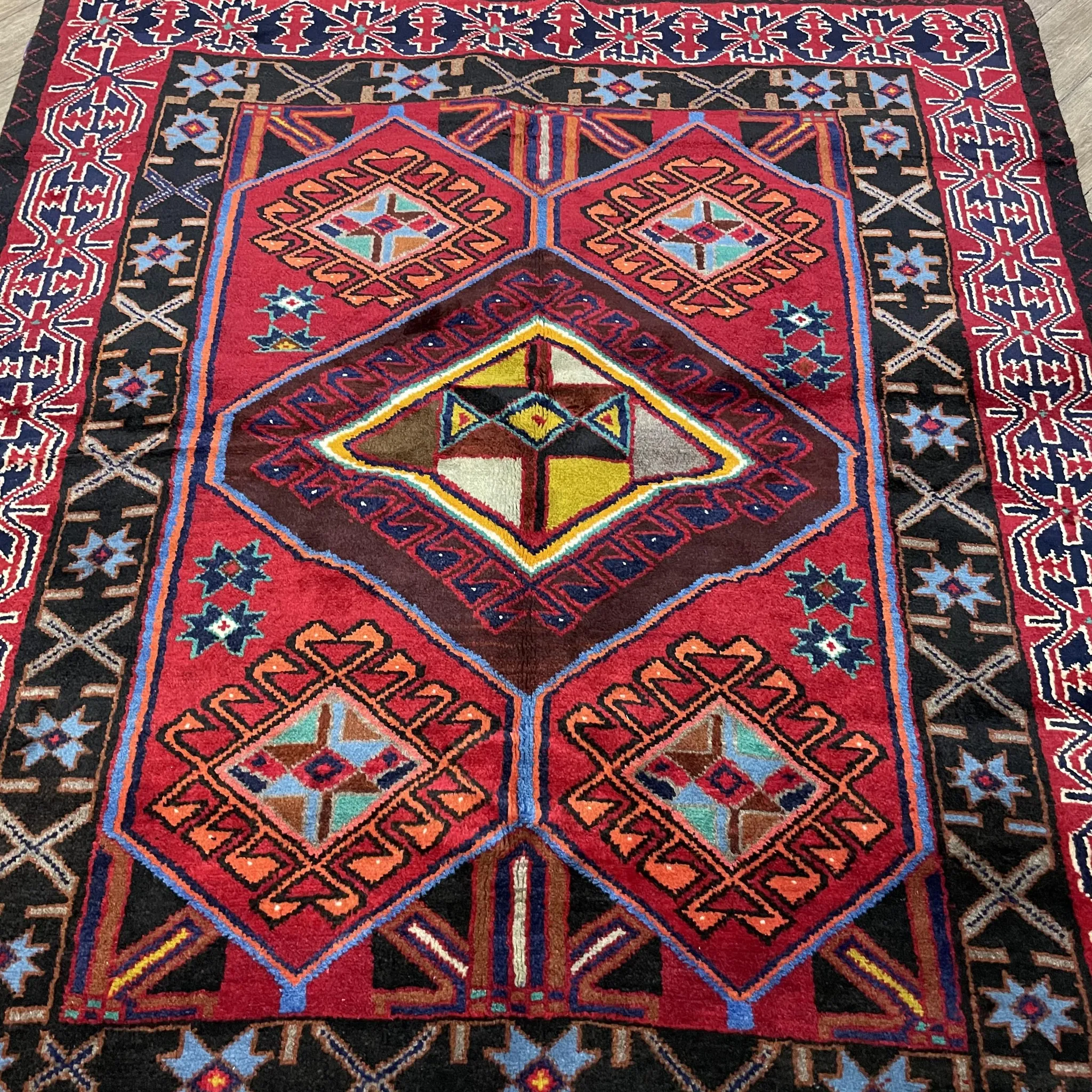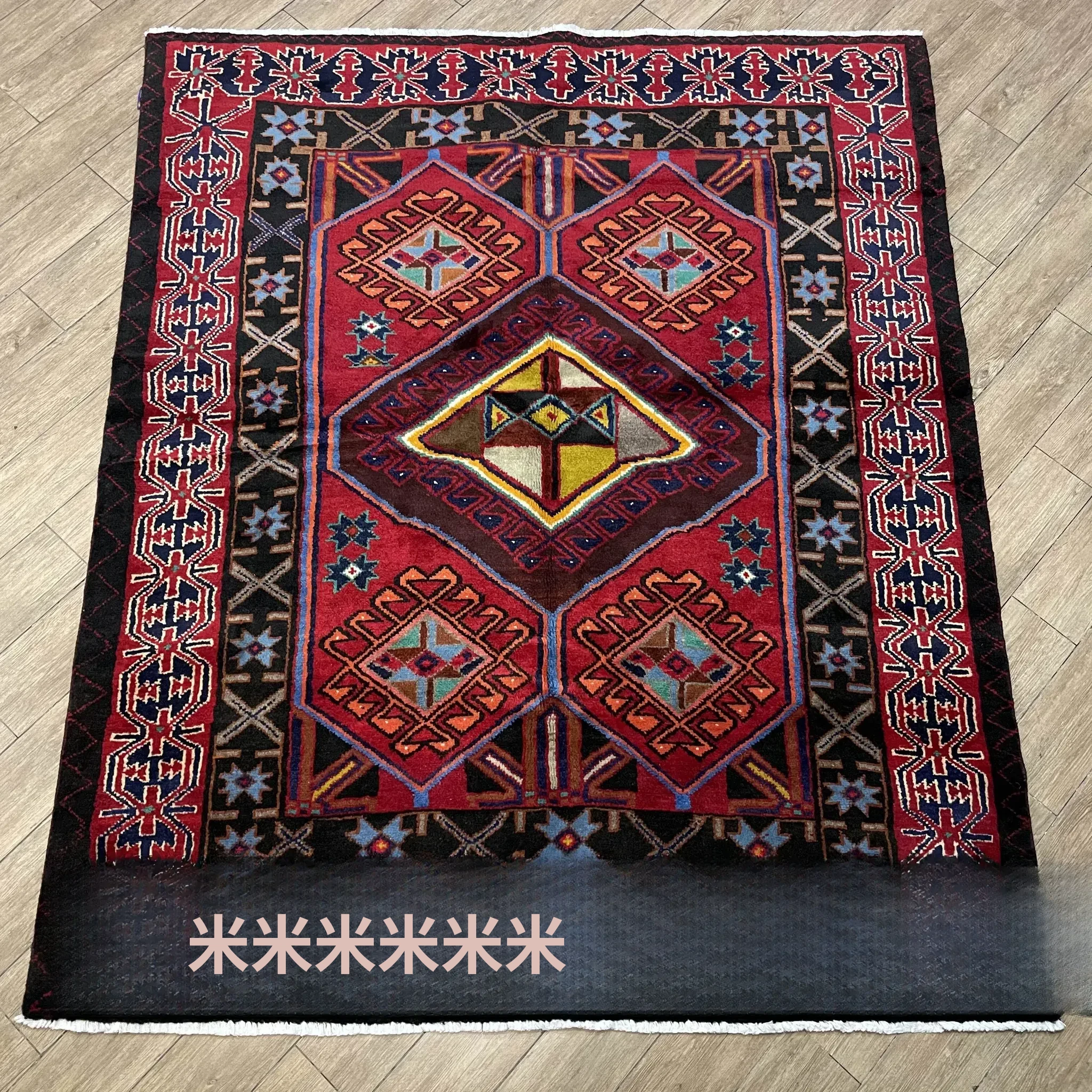 FERDOWS輸入手作絨毯 - 純羊毛で織り上げたペルシャ風アメリカンスタイル、民族的な部族の魅力を持つ、どんなインテリアにもぴったり!