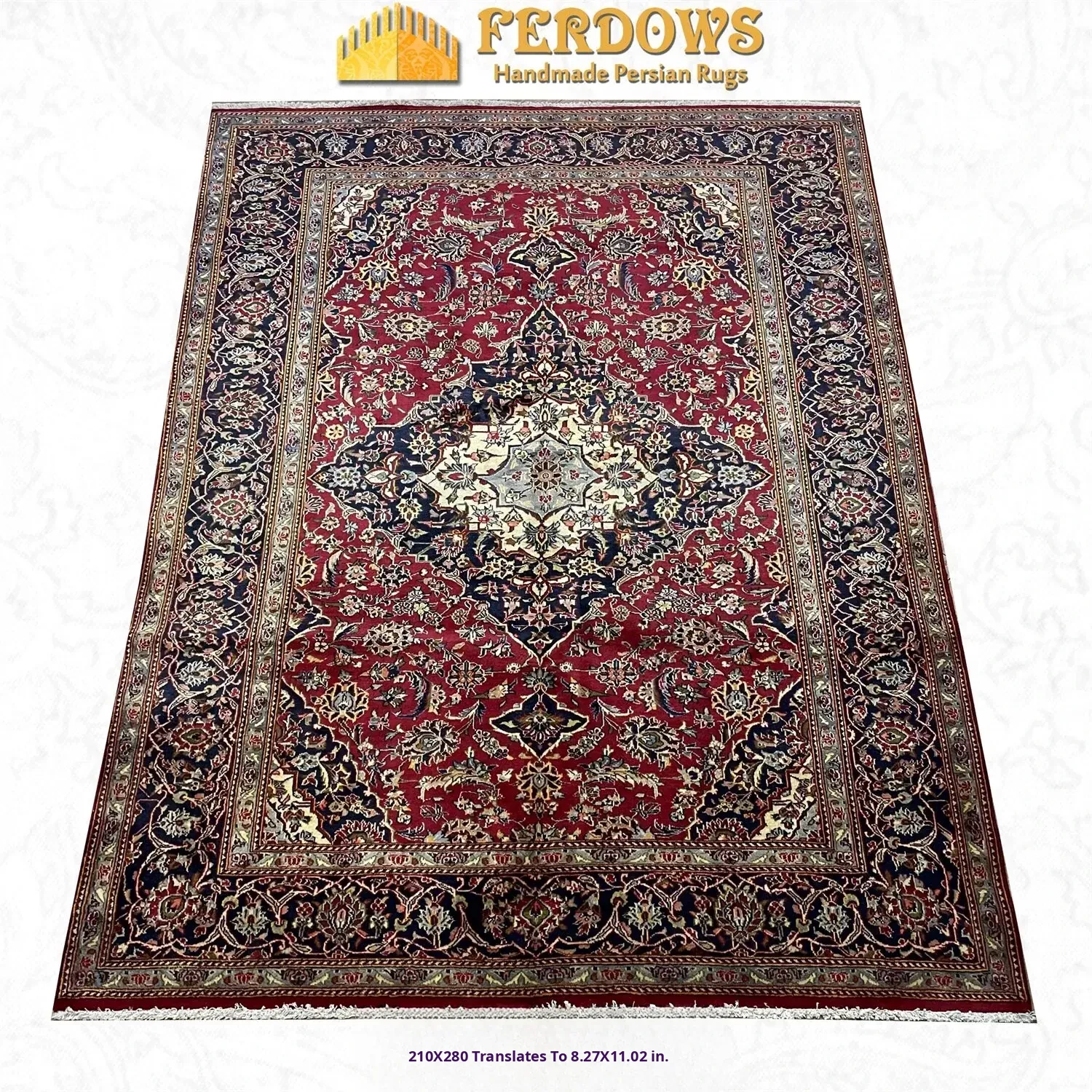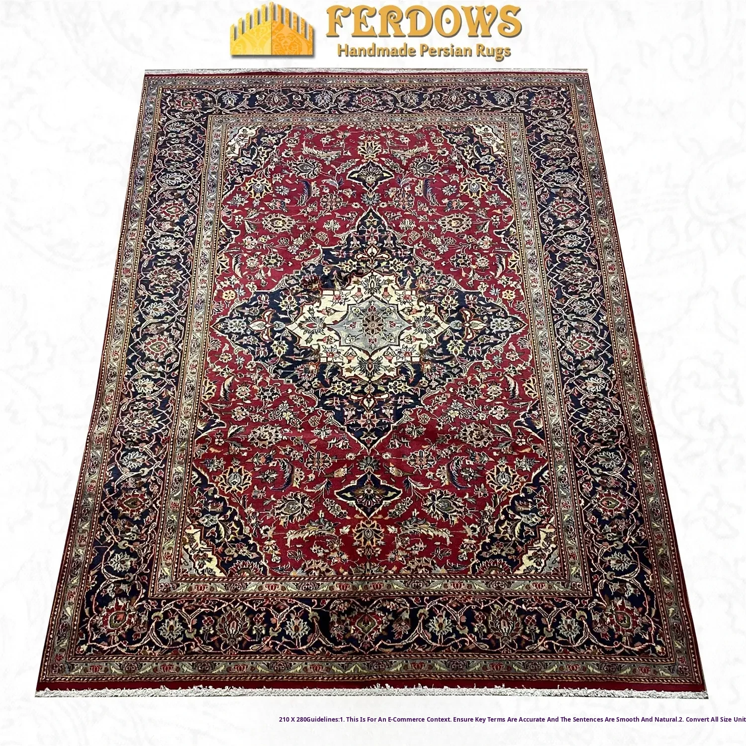 FERDOWS Handcrafted Persian Wool Carpet – Vintage European and American Style Classic Rug for Living Room, Imported Quality with Intricate Knotting