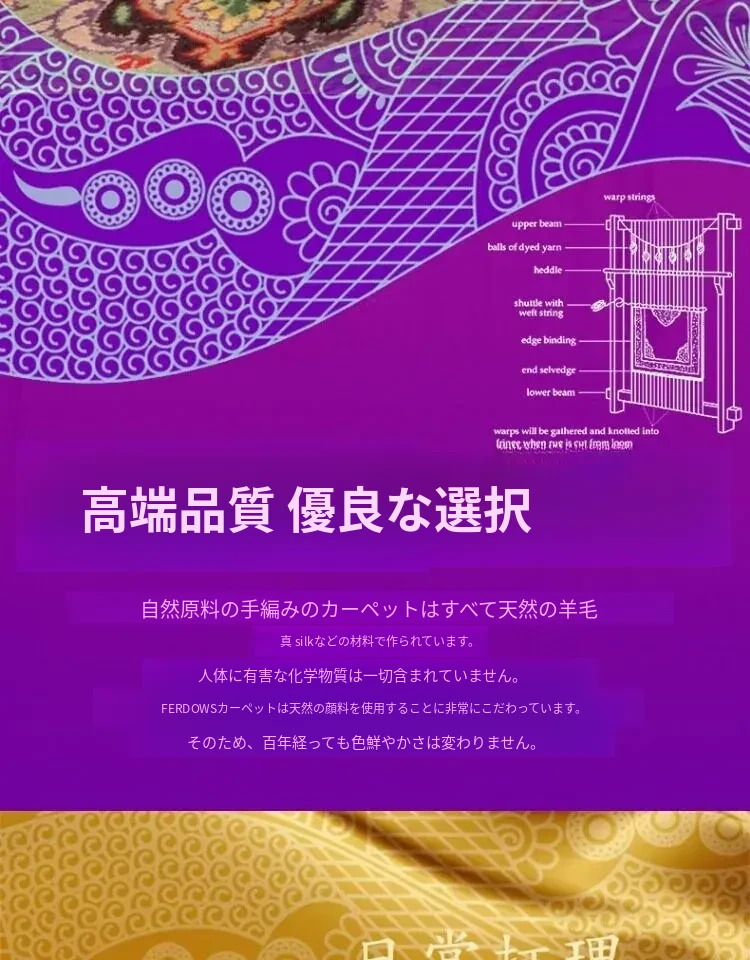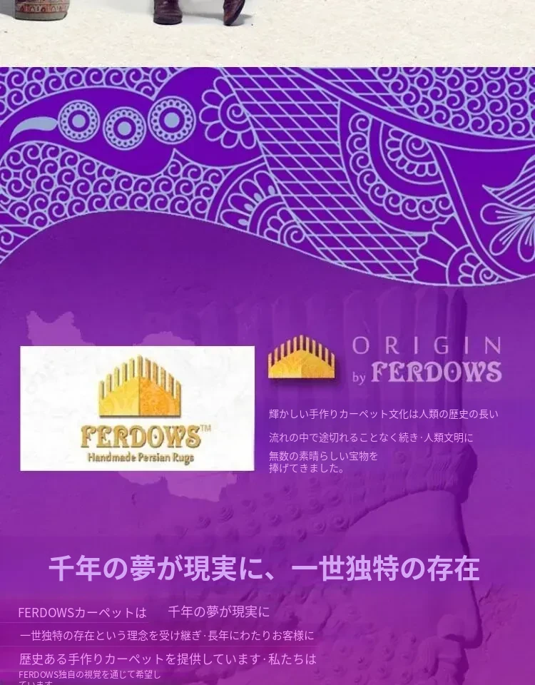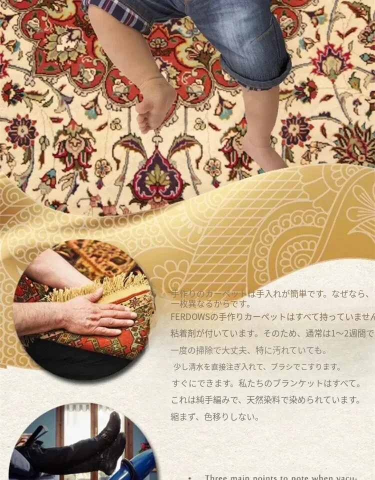 FERDOWSラグ:輸入の純手作り結び編み、100%ウール使用!欧風・米風・仏風の古典デザインで、リビングや寝室にぴったりの高級感あふれる一品。おしゃれな空間を演出します!