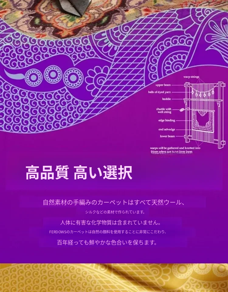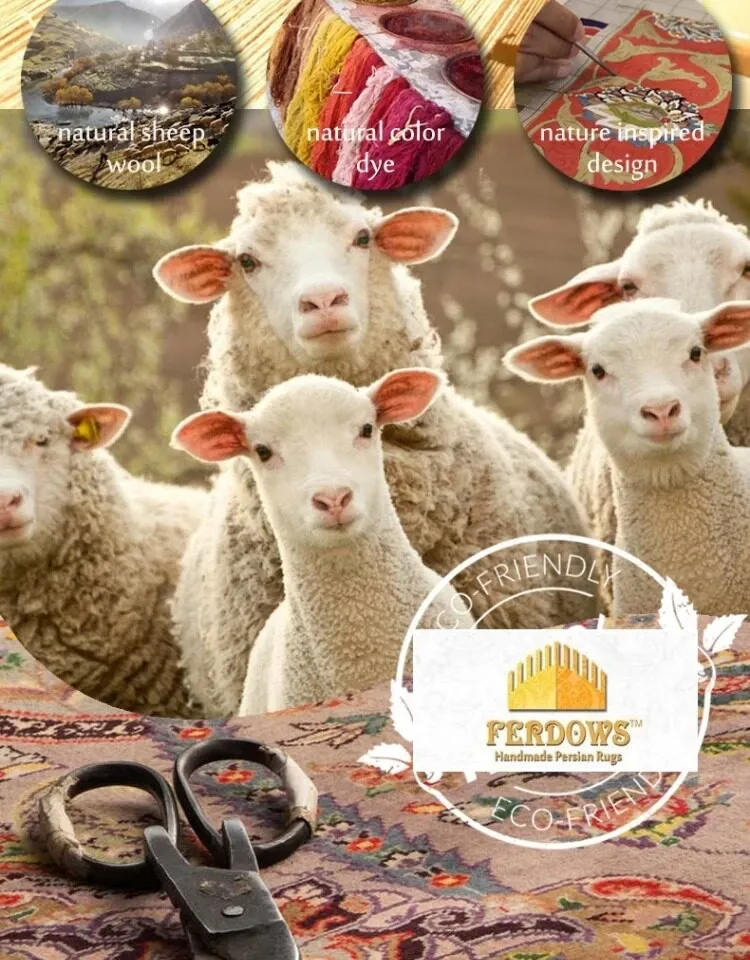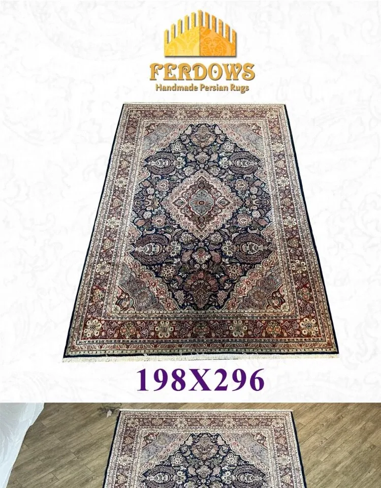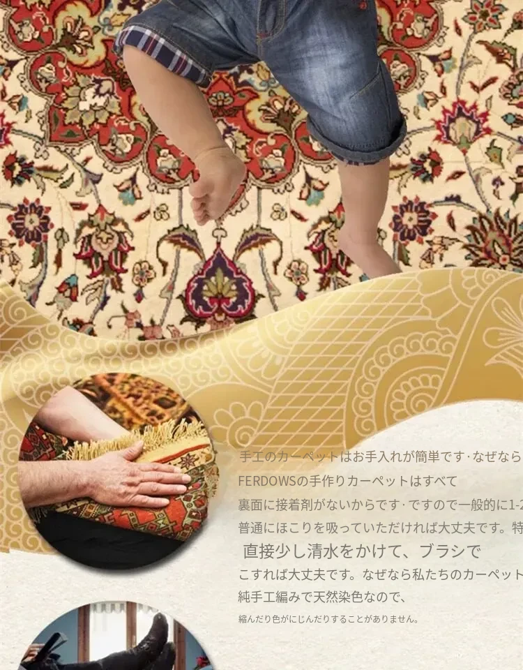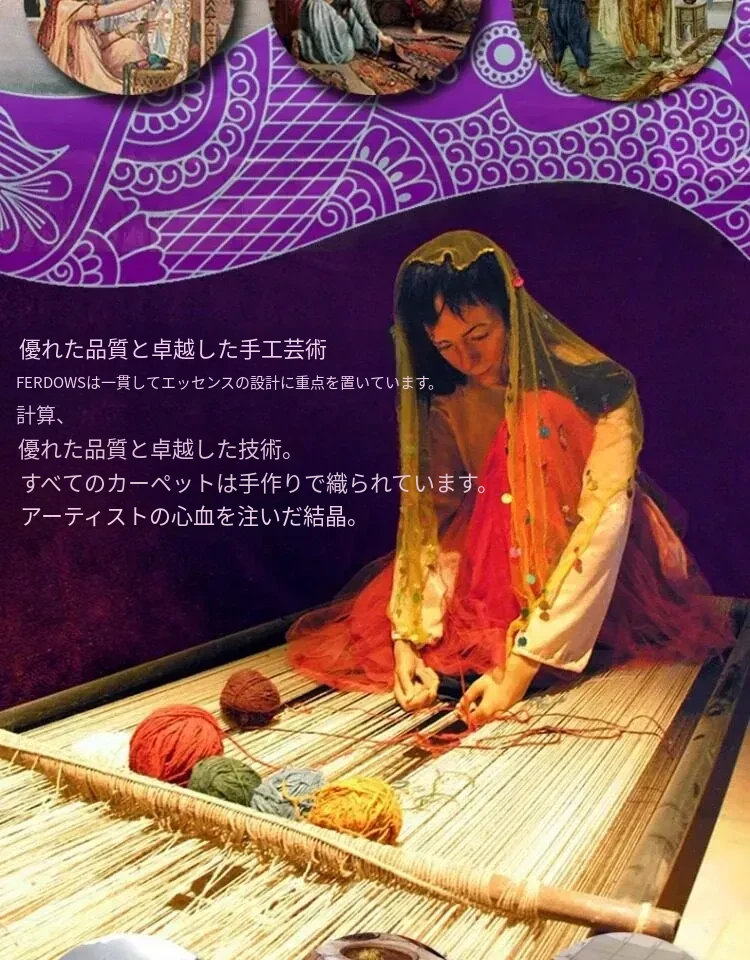 FERDOWS絨毯 - 輸入手作結び、ウール製のヴィンテージフレンチ&アメリカンクラシックデザイン。リビング、寝室、書斎に最適な高級感あふれるアイテム!あなたの空間を華やかに演出します。