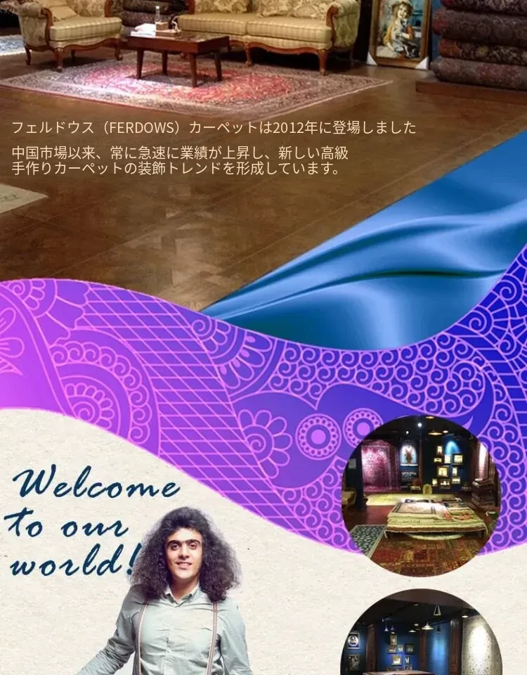 FERDOWSカーペット 輸入品 手作り結びの高品質100%ウール アメリカン・ニュー中式レトロデザイン リビング・ベッドルームに最適なラグ