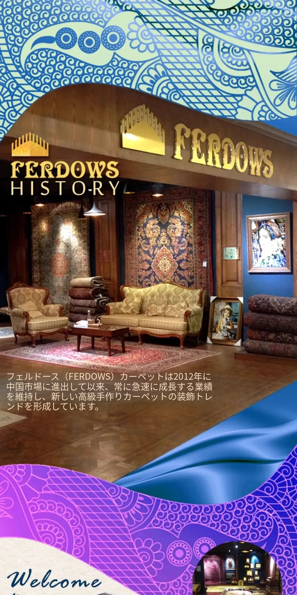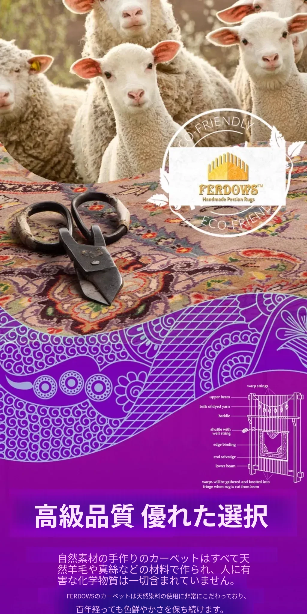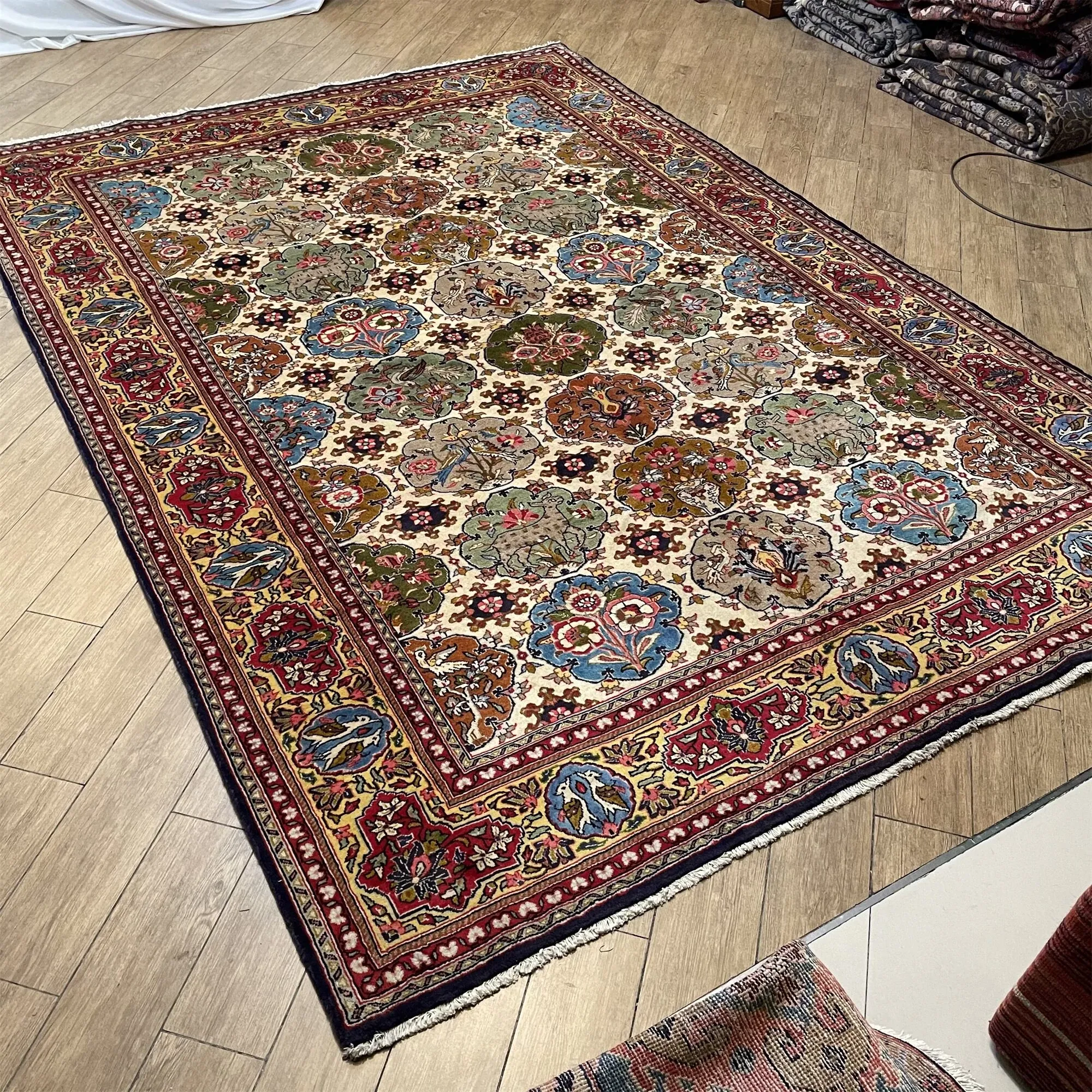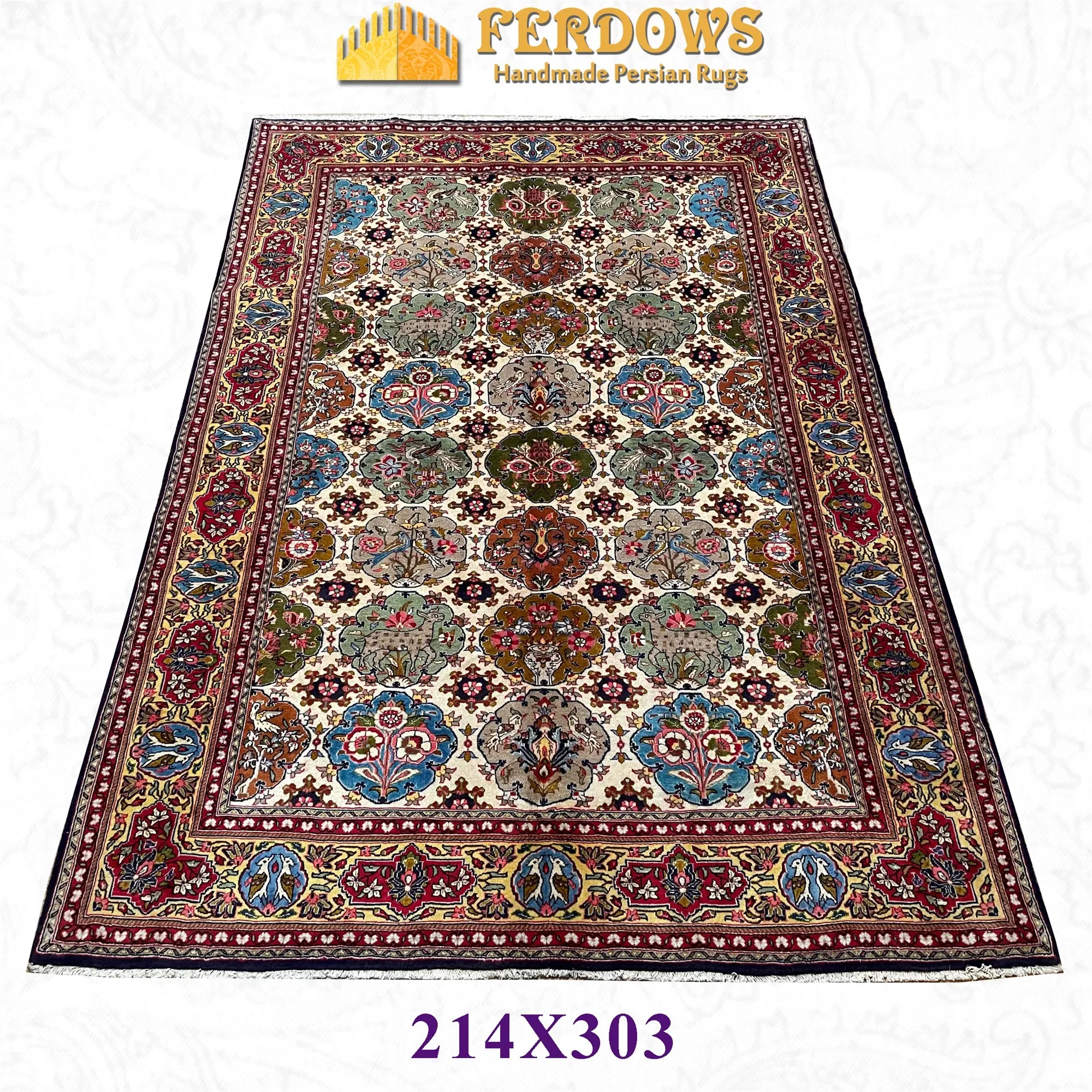 FERDOWSペルシャ絨毯 輸入品 手作り結びの純ウール 欧州・米国スタイルのレトロ 動物・植物デザイン リビングルームにぴったり!高級感溢れるインテリアを演出します。