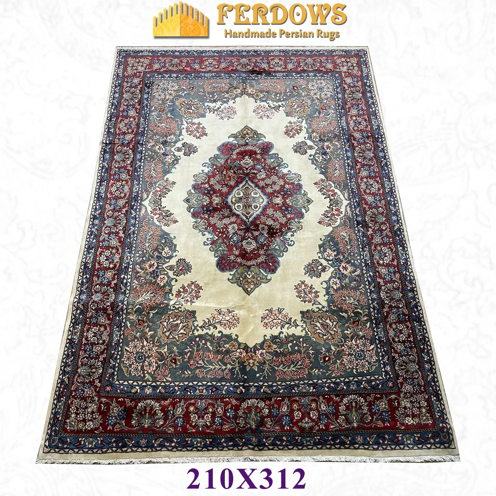 FERDOWSペルシャ絨毯 オリジナル輸入 手織り・手結び 高級ラグ 贅沢な純羊毛使用 ヴィンテージ風の中東の遊牧民スタイル お部屋を華やかに演出します!