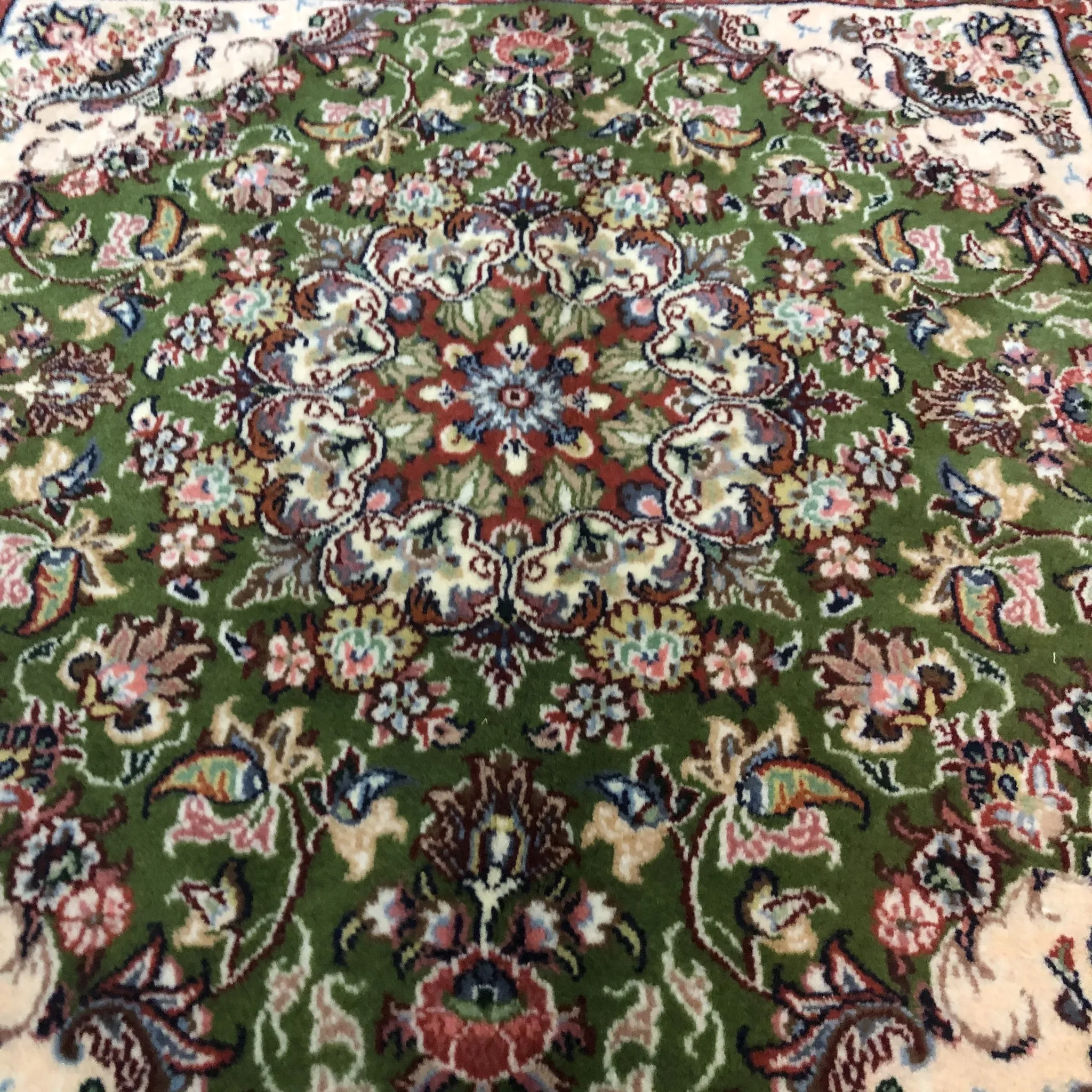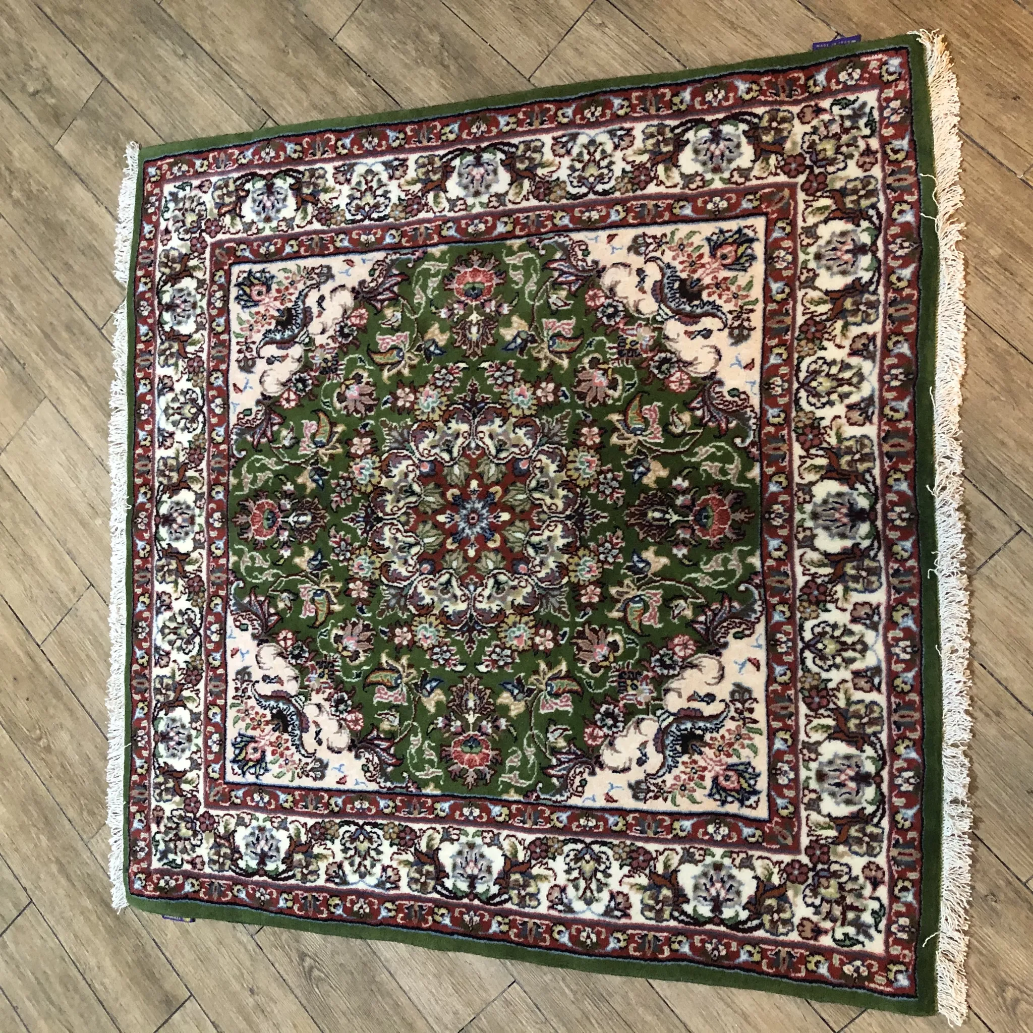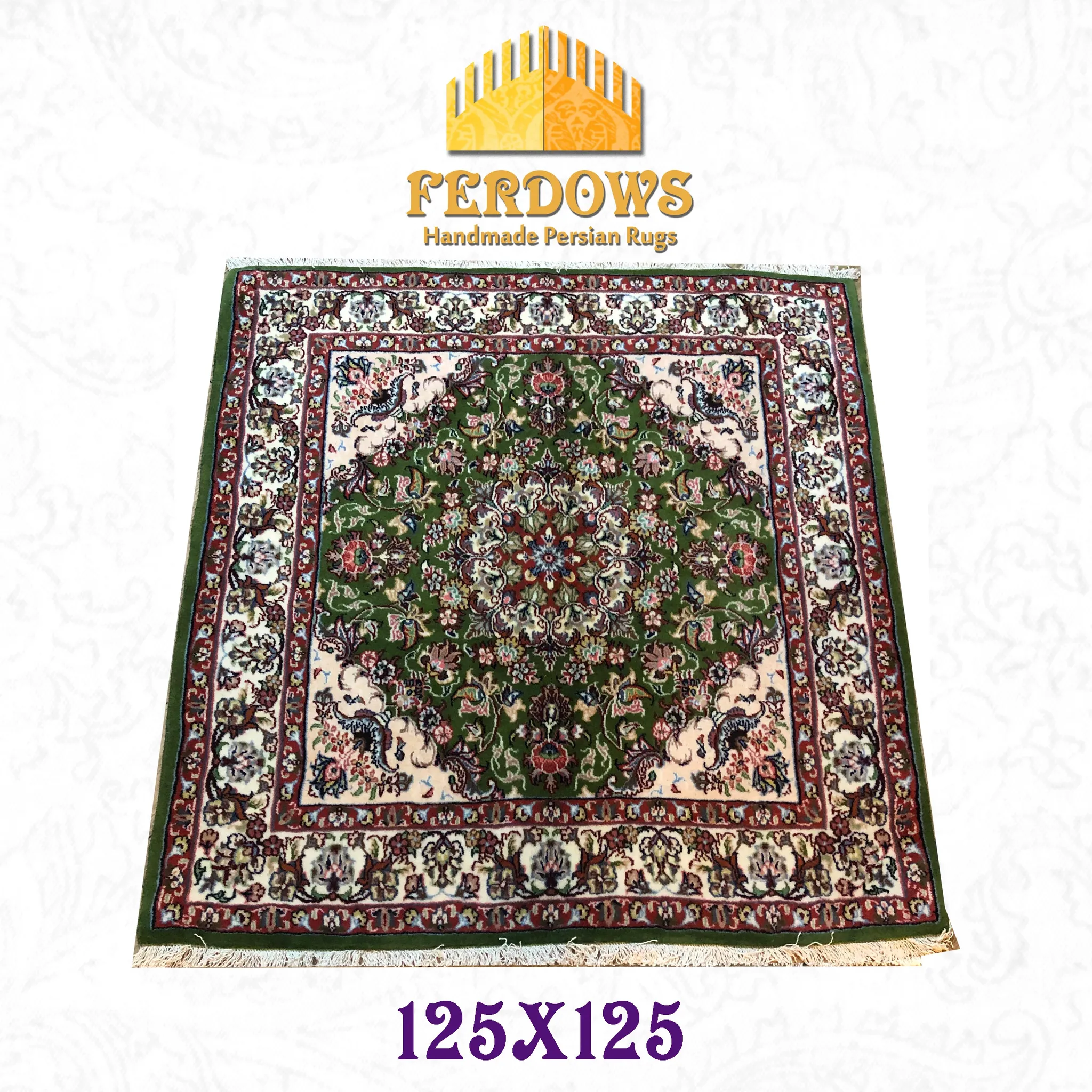 FERDOWSペルシャ手作りウールカーペット 125X125 緑色フラワーパターン おしゃれなリビングにぴったりの欧米スタイル!高品質な素材で、温かみのある空間を演出します。