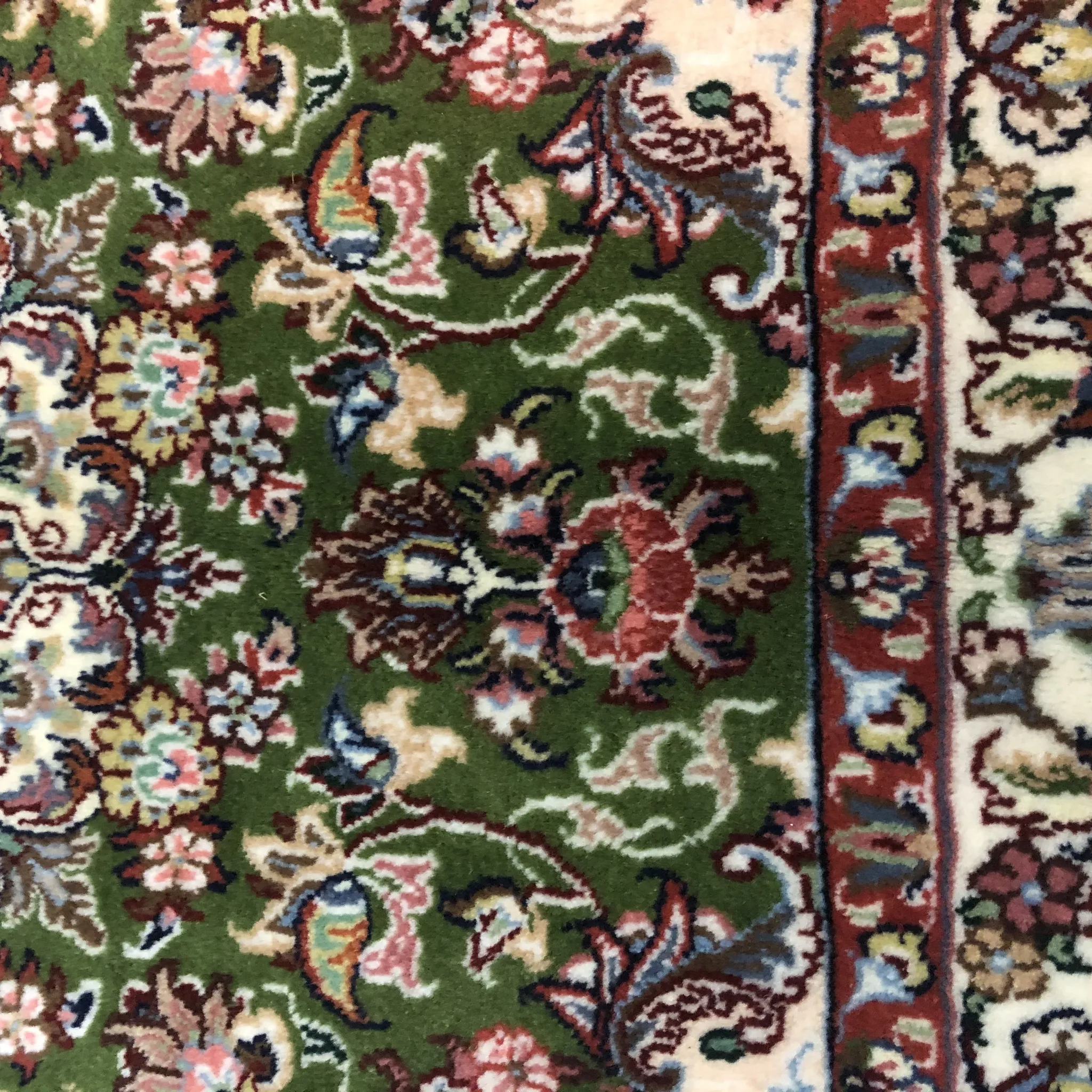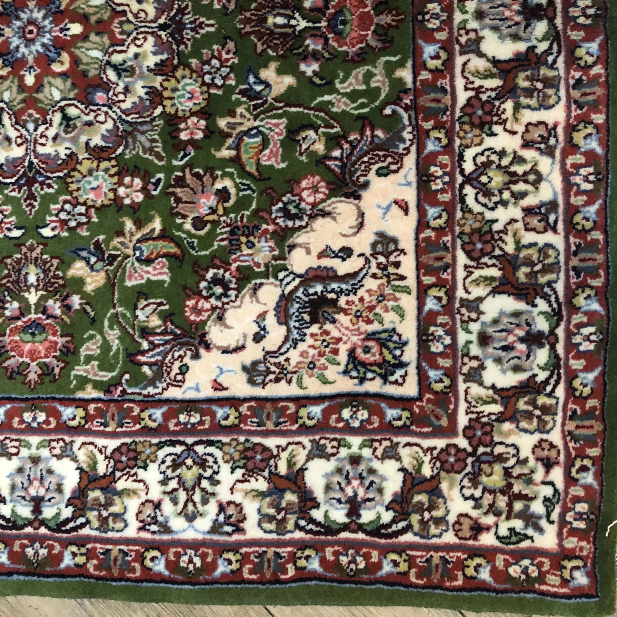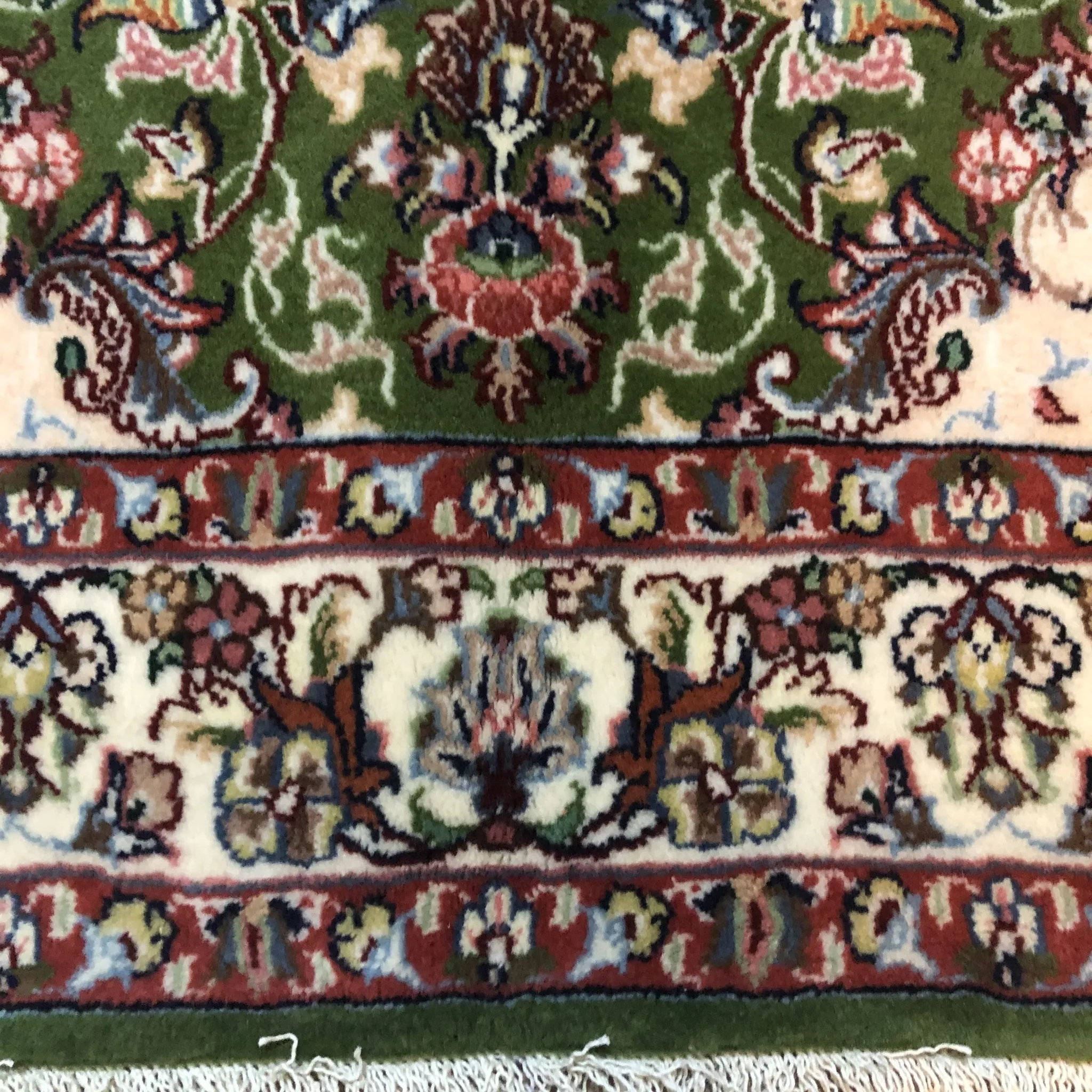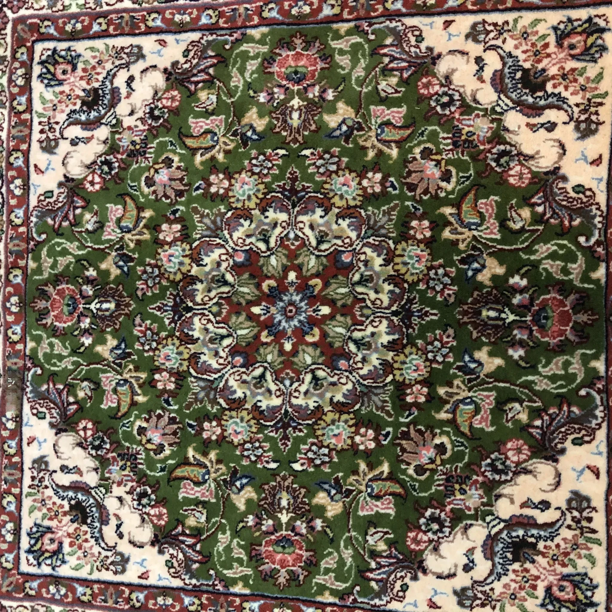 FERDOWSペルシャ手作りウールカーペット 125X125 緑色フラワーパターン おしゃれなリビングにぴったりの欧米スタイル!高品質な素材で、温かみのある空間を演出します。