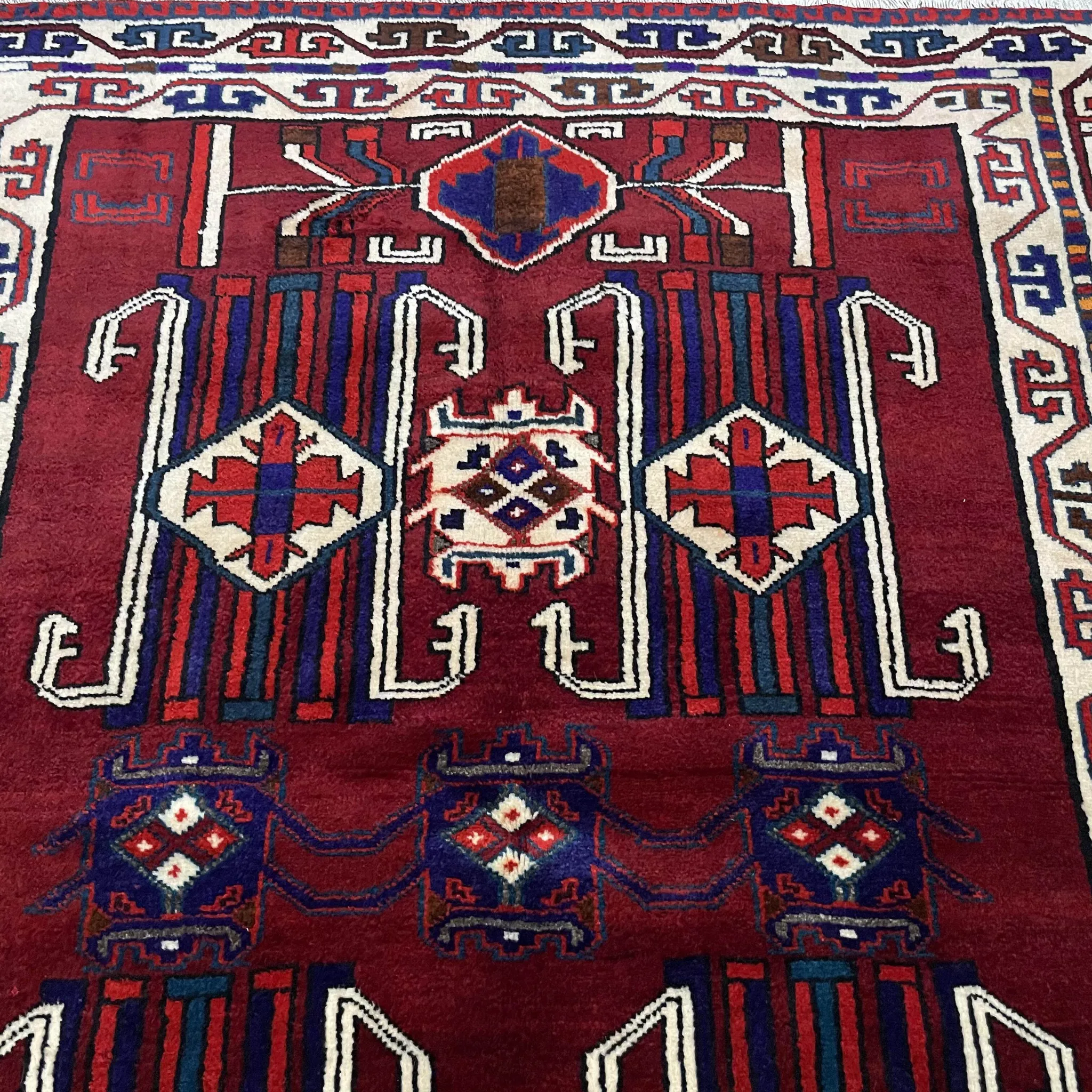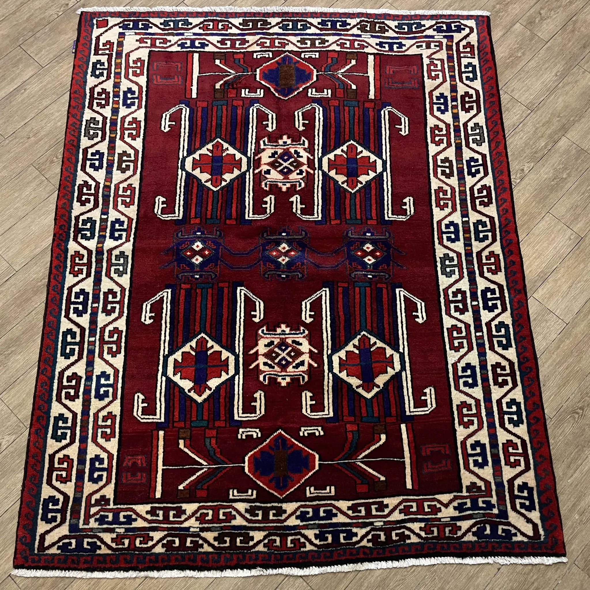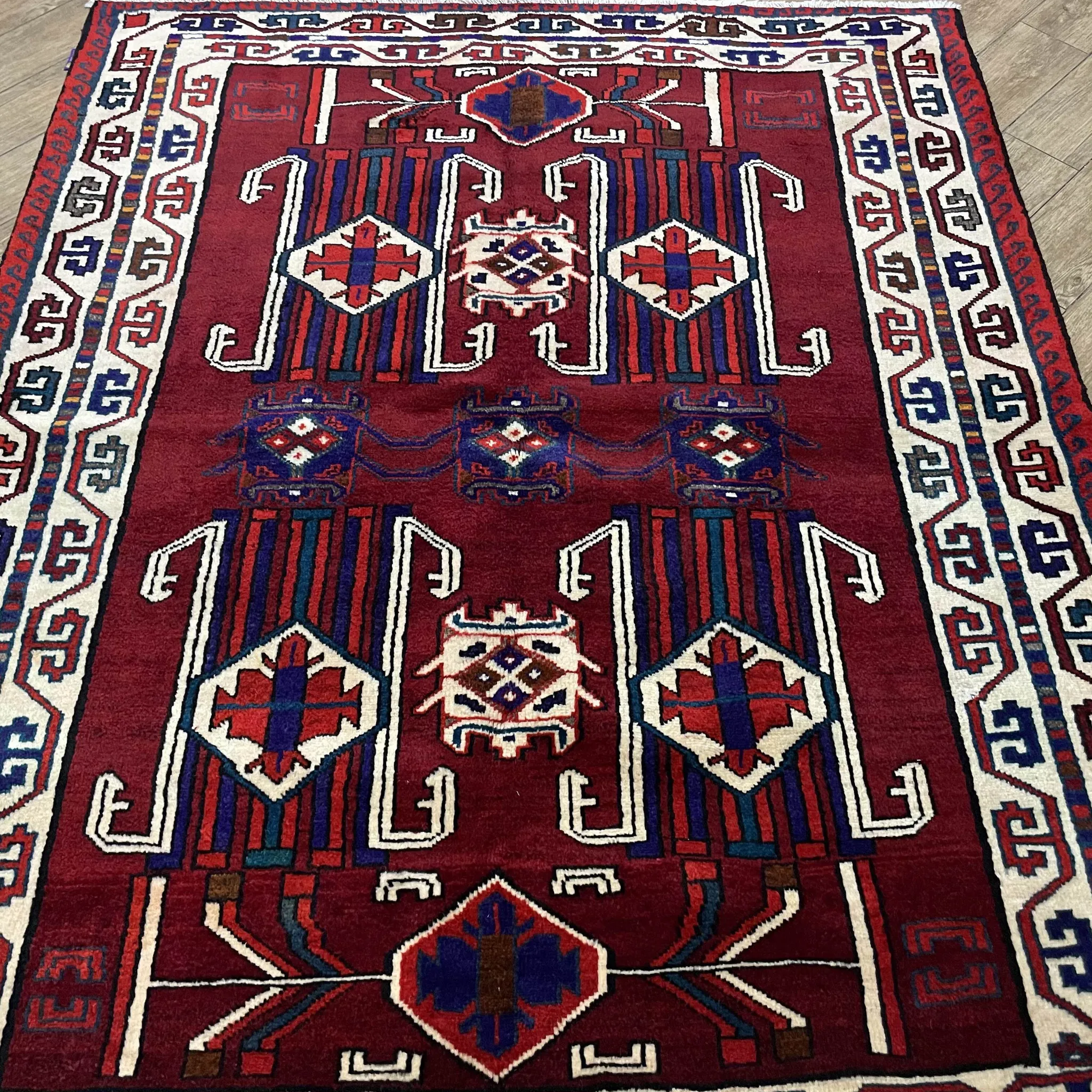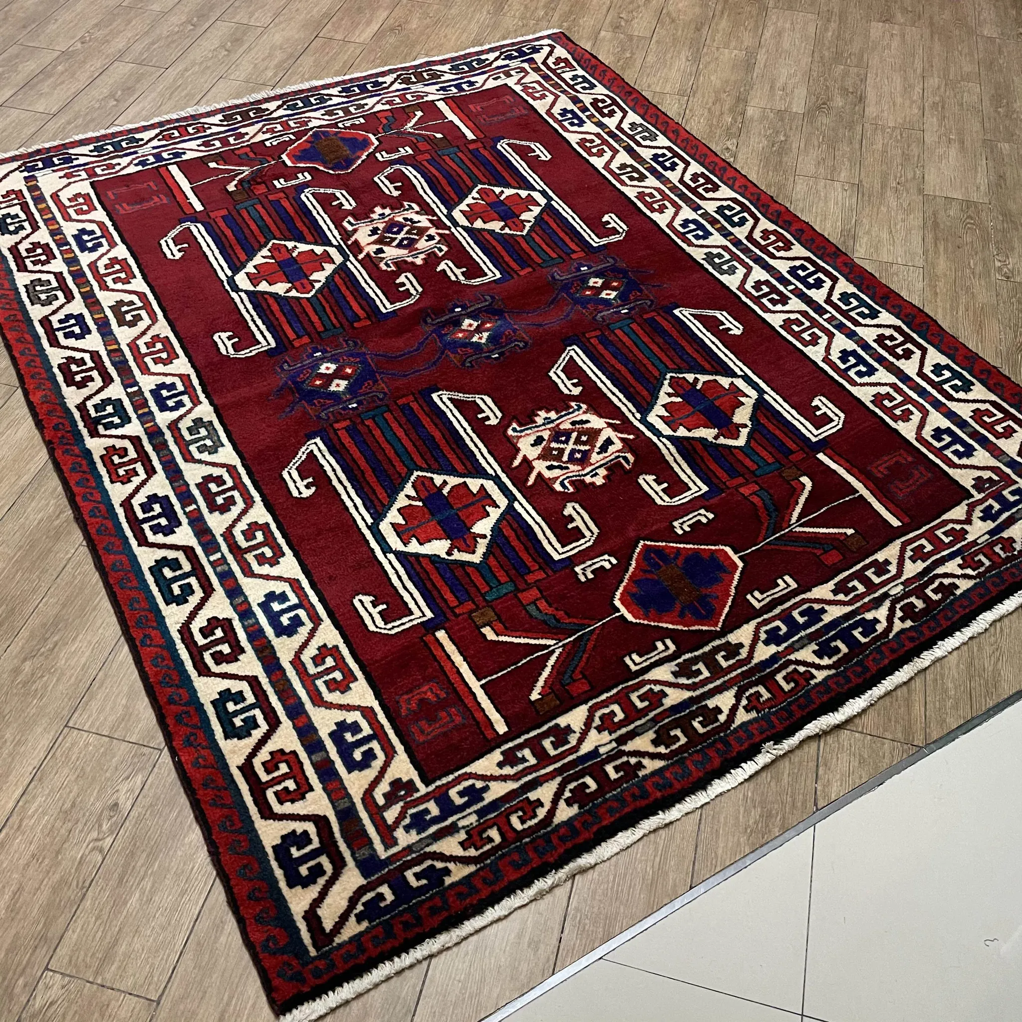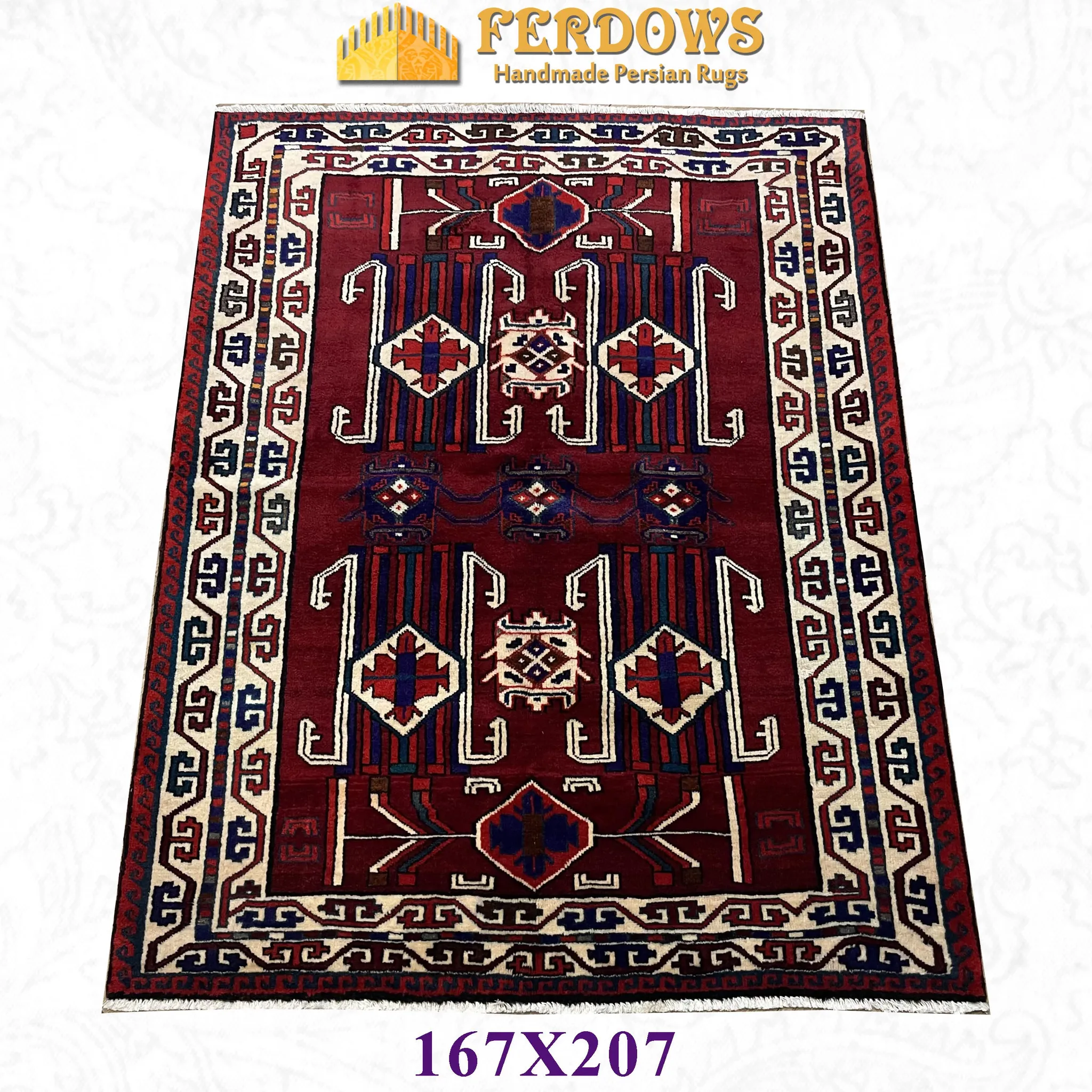 FERDOWSペルシャ絨毯 直輸入 手作り結び目 100%ウール 新中式アメリカンヴィンテージ トライバルデザインの魅力を引き立てる一品!高級感溢れるインテリアに最適です。