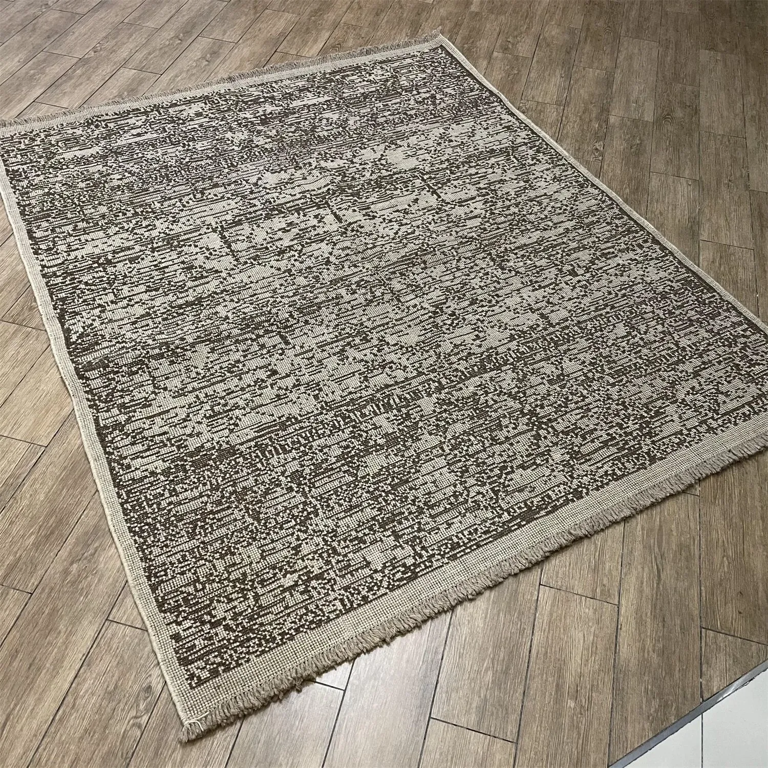 FERDOWS輸入のキリムカーペット、手作りウール、モダンミニマリストスタイルの単色ストライプ、ヴィンテージ感を楽しめる一品!お部屋をスタイリッシュに彩る、こだわりの逸品です。