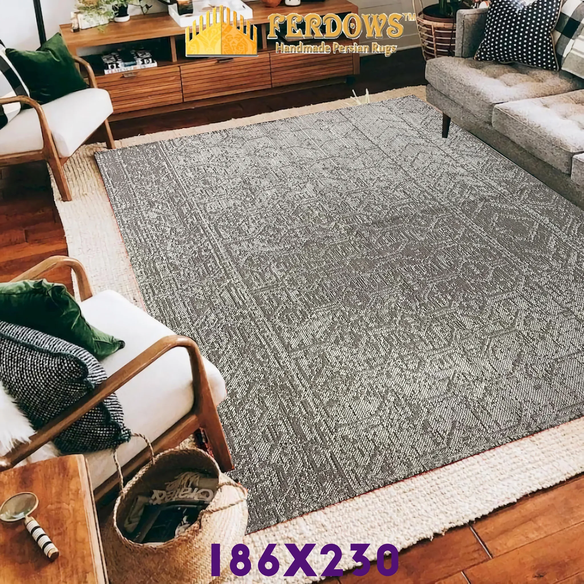FERDOWS輸入のキリムカーペット、手編みの純羊毛素材、後現代的な和風ミニマル侘寂スタイルでお部屋をおしゃれに演出!