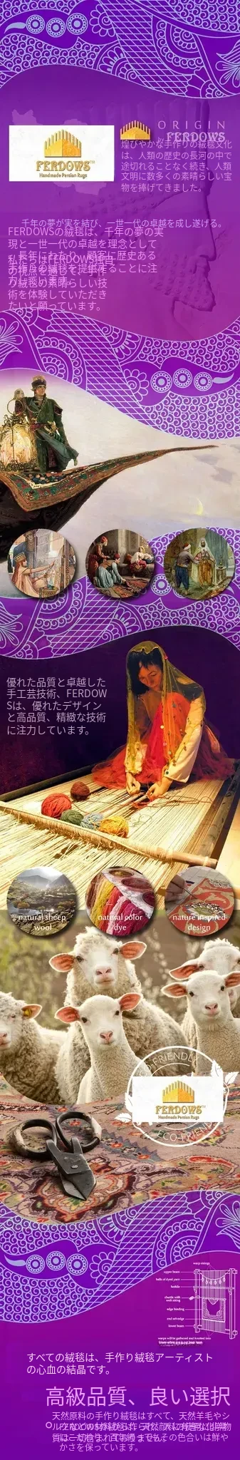 FERDOWSペルシャカーペット 本場輸入 手作り結び 羊毛素材 背面接着剤不使用 天然染色 欧風アメリカンスタイル おしゃれで高級感あふれる一品です!