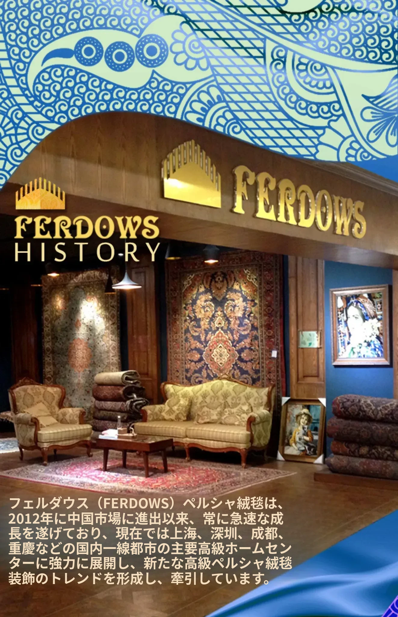 FERDOWSペルシャカーペット 輸入手作り100%ウール 欧風・米風・新中式デザイン リビング・書斎に最適なラグジュアリーな一品