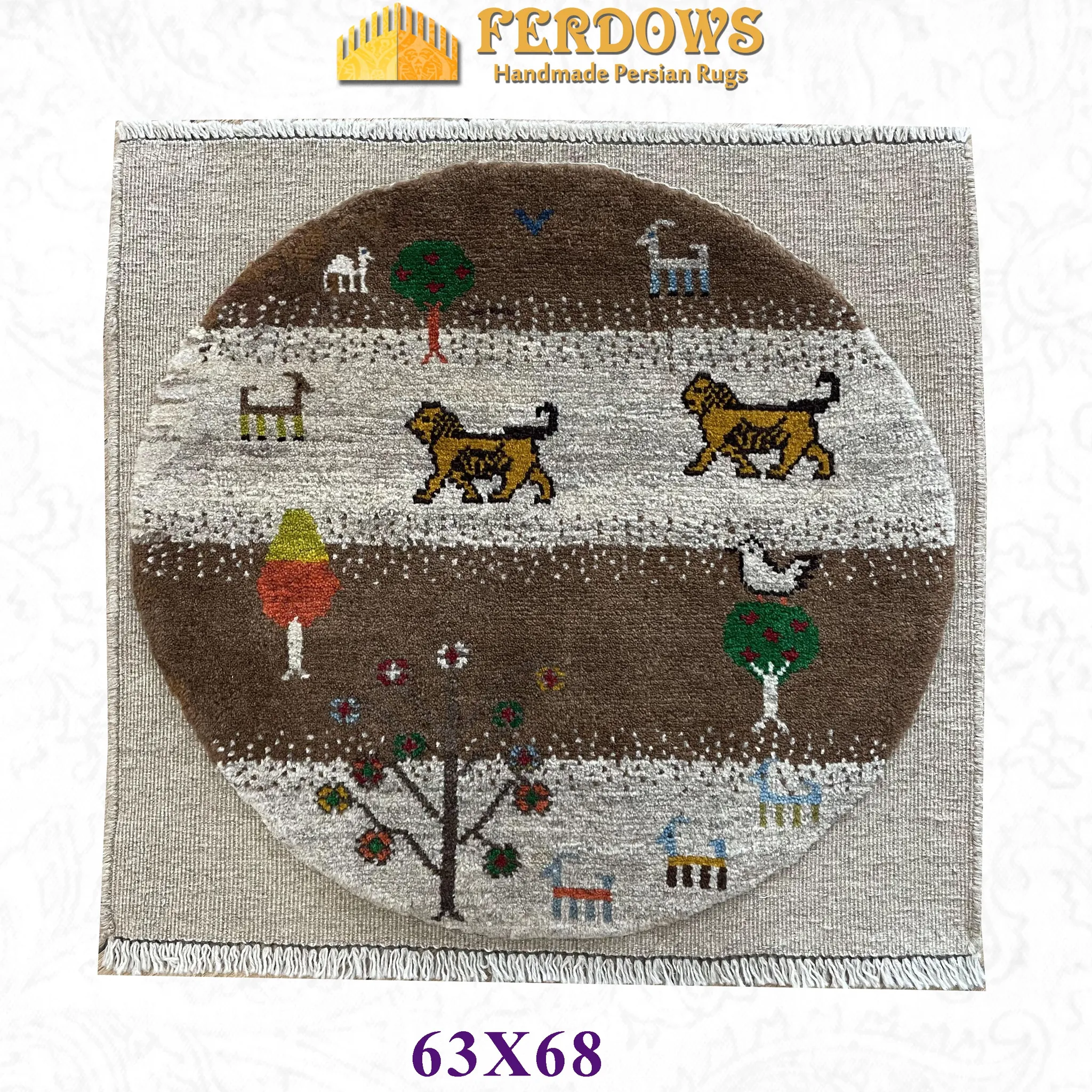 FERDOWSペルシャカーペット/タペストリー 壁掛け装飾 本場輸入 ハンドメイド 100%ウール 独特なライオンデザインでお部屋を華やかに!