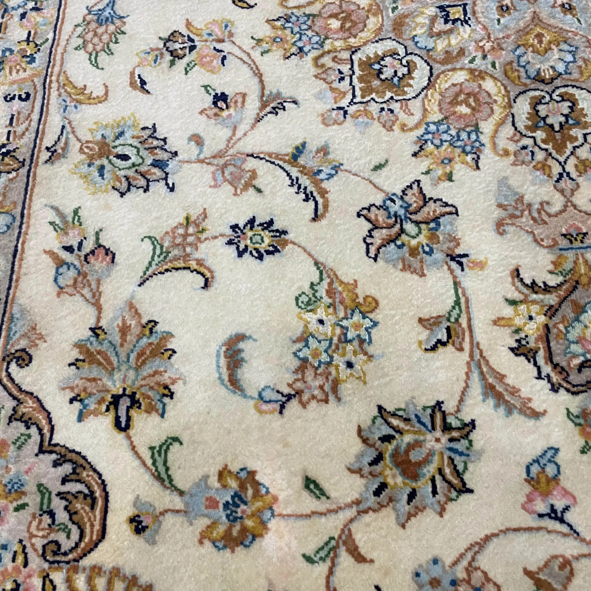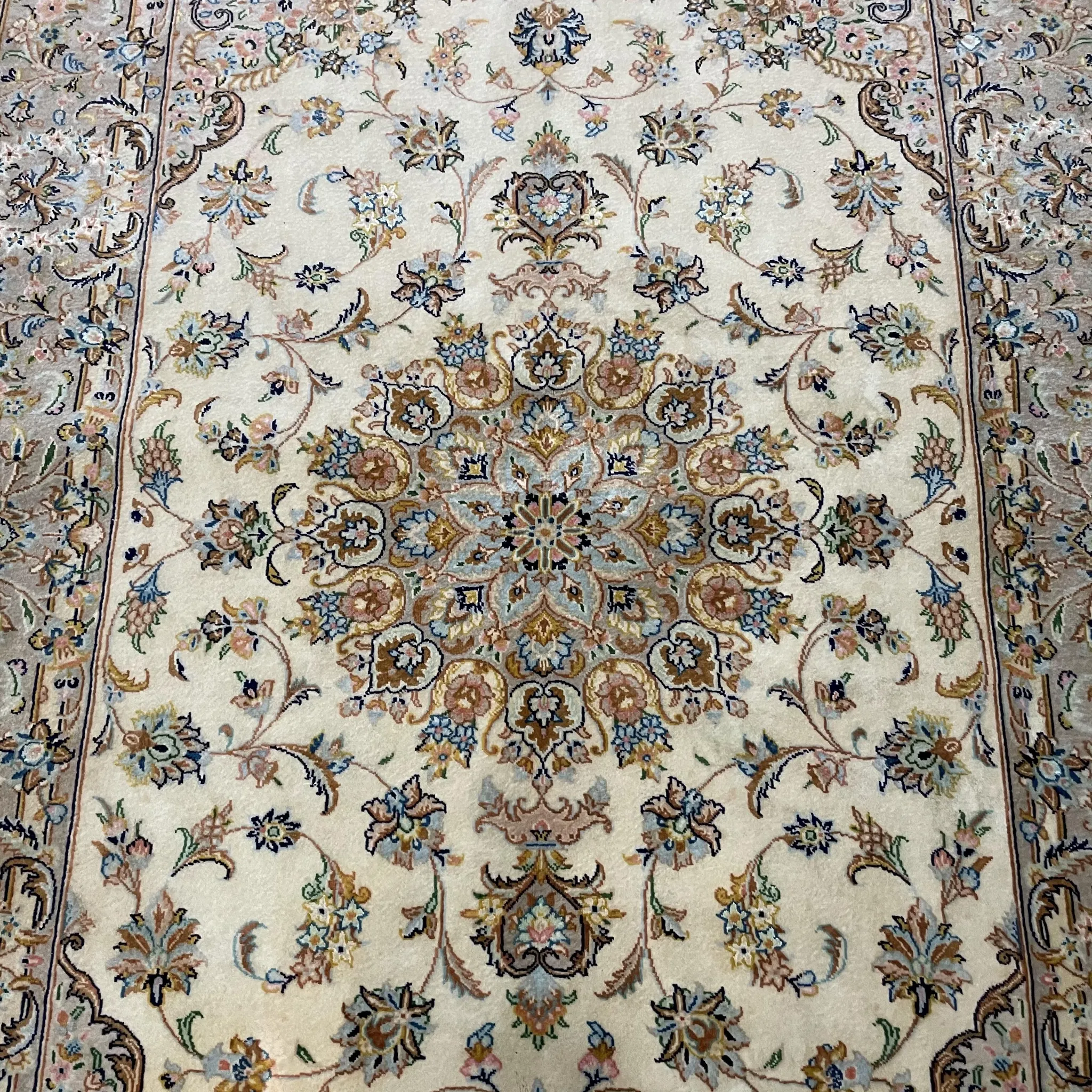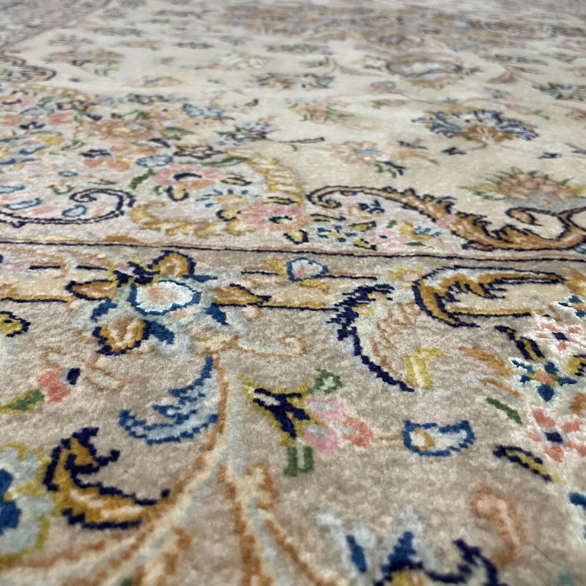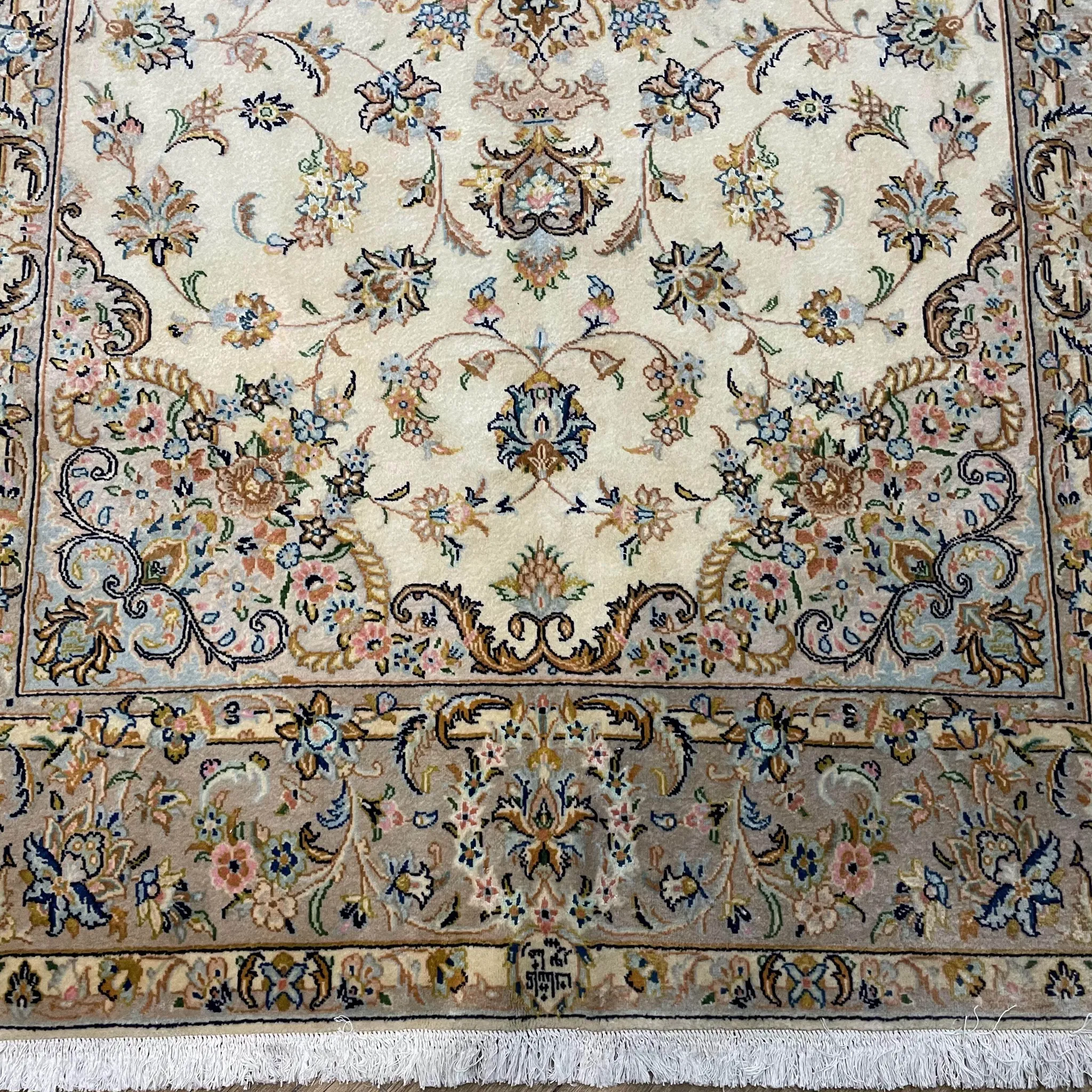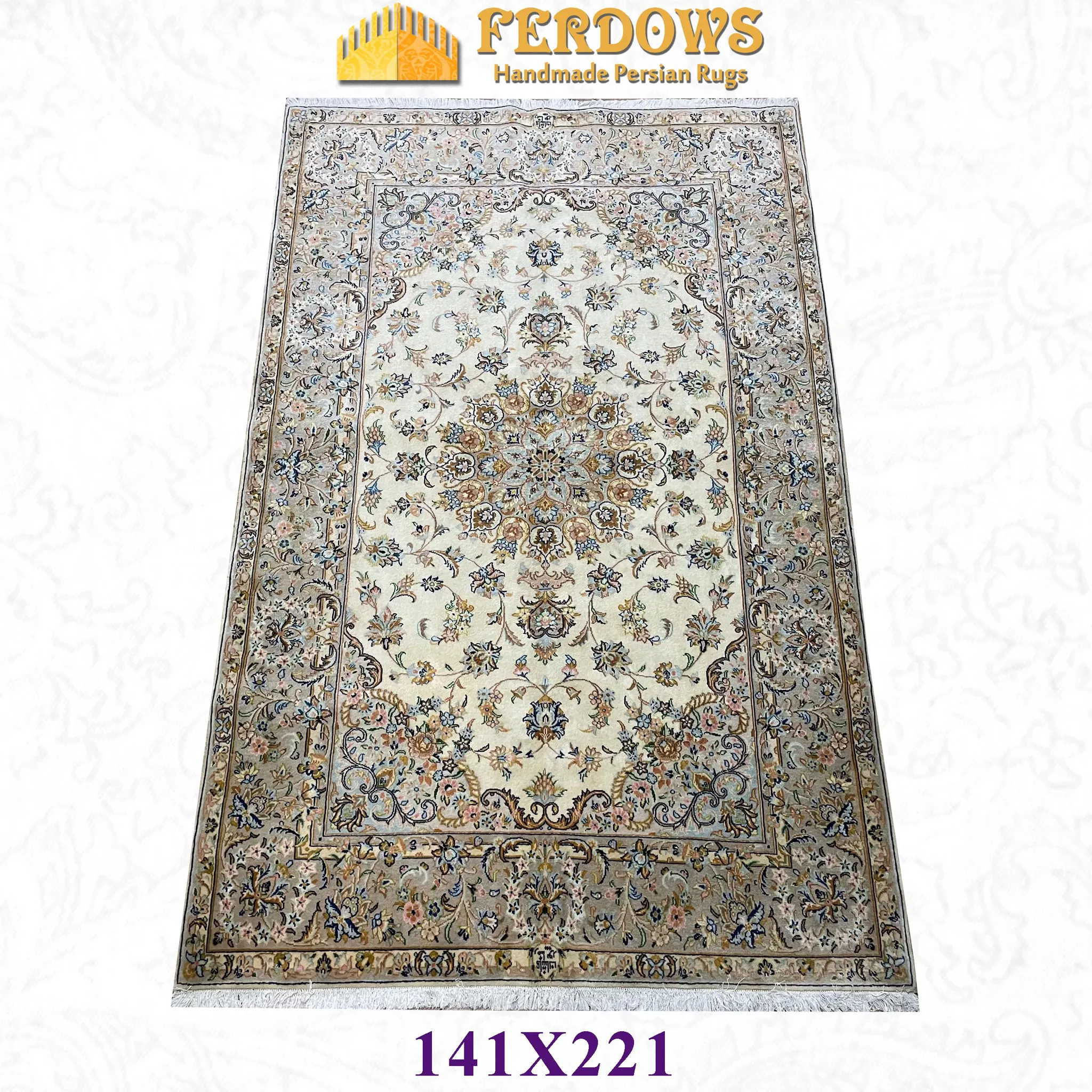 FERDOWSペルシャデザイナーのサイン入りオリジナルインポート手織りウールラグ - 高級感溢れる欧風デザイン、職人の技が光る一品!
