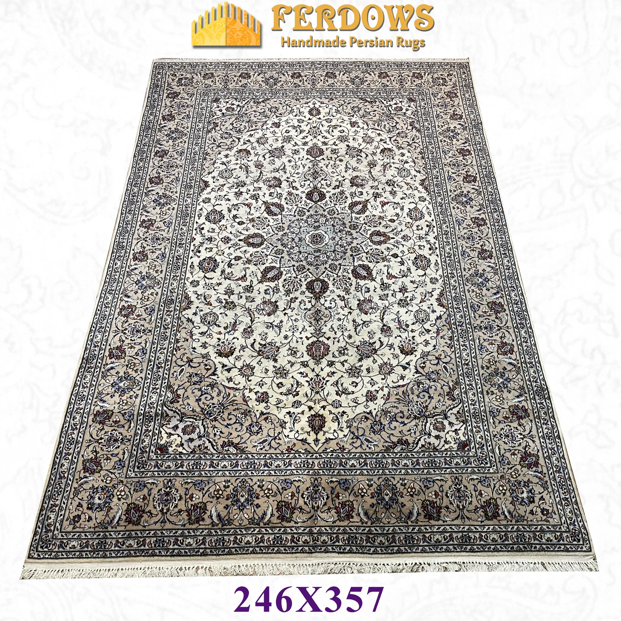 FERDOWSペルシャ絨毯 - 本場輸入、純手作りの結び目、100%ウール使用!欧風・フランス風・古典・中華スタイルの美しさを体感。お部屋を華やかに彩る逸品です!