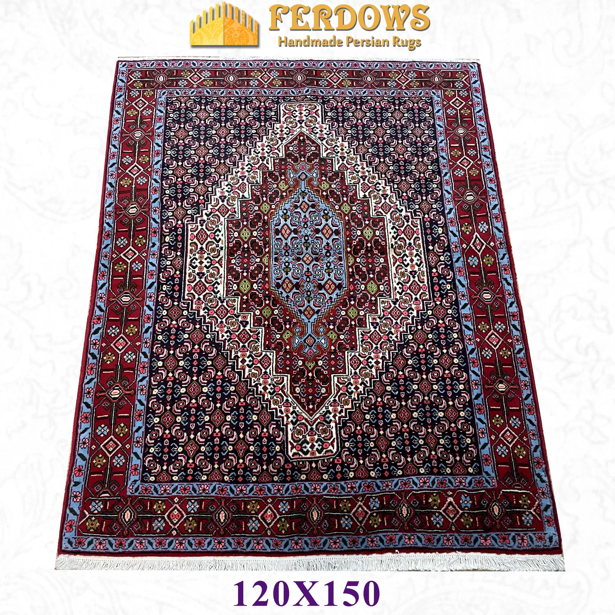 FERDOWSペルシャカーペット 本場直輸入のハンドメイド 高密度ウール使用 欧風田舎スタイルの寝室にぴったり!