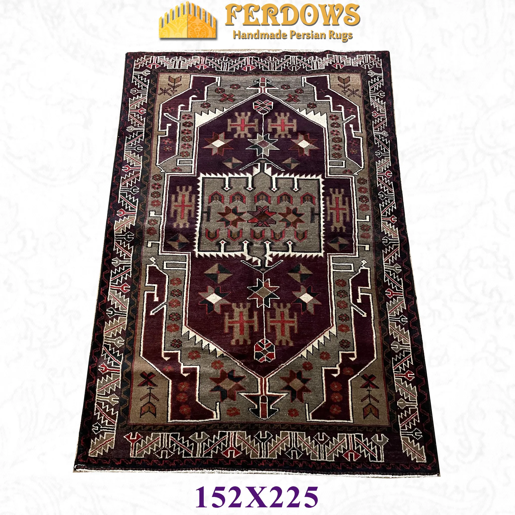 FERDOWSペルシャ絨毯 本場直輸入 手作り結び 羊毛素材 民族風の遊牧スタイル レトロなリビングルームラグで、心地よい温もりと独特の美しさをお楽しみください!