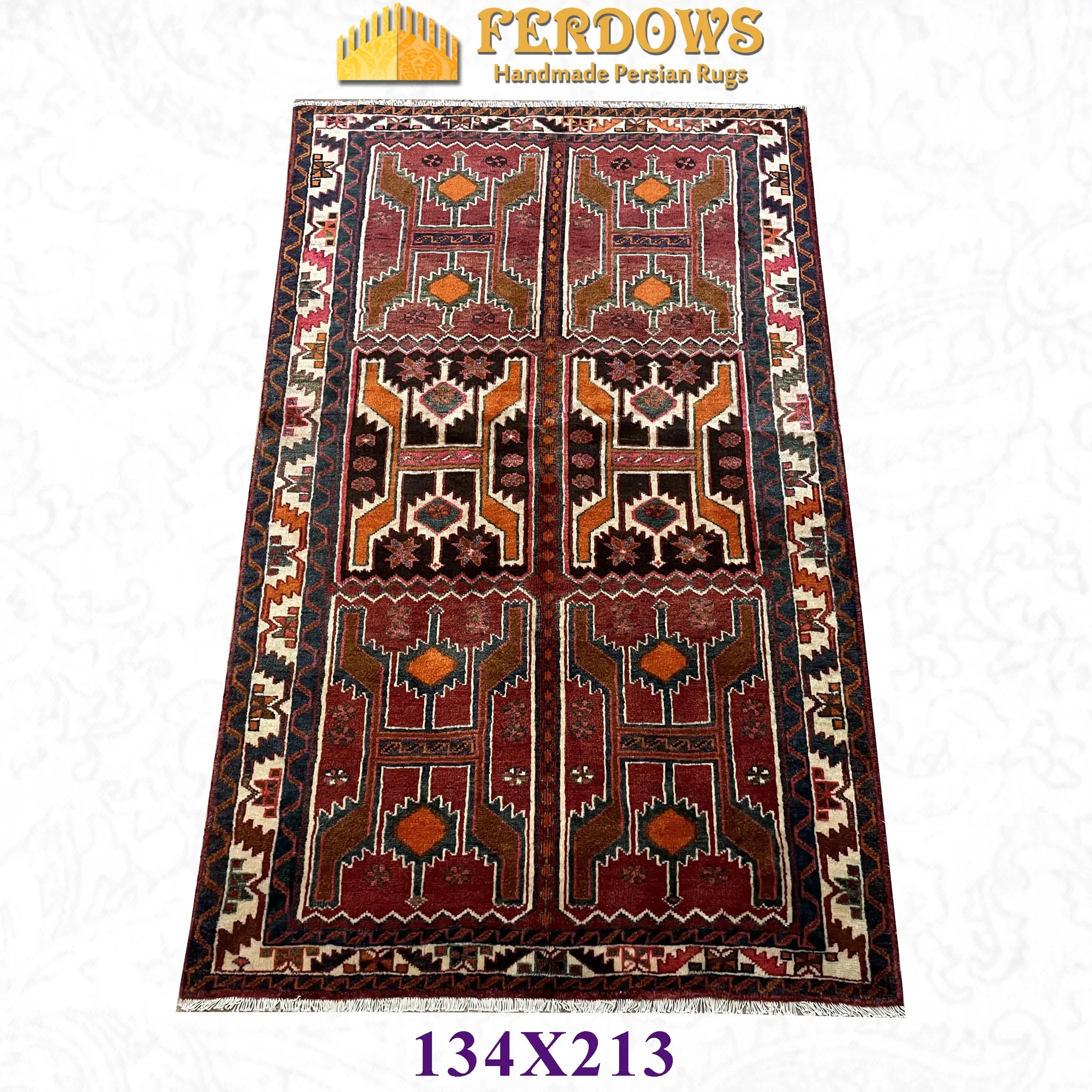 FERDOWSオリジナル輸入手編みウールカーペット - アメリカンヴィンテージ&新中式の洗練されたデザイン、遊牧風のペルシャスタイルを楽しむ!あなたの空間に温かみと個性をプラス!